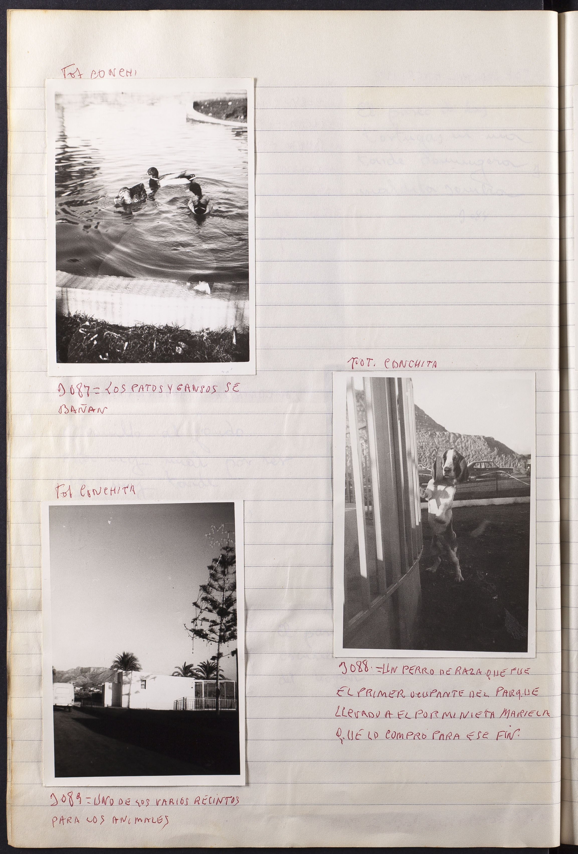 Papel con información manuscrita a bolígrafo tamaño 22 x31 cm. Incluye fotografías monocromas en diferentes tamaños que se especifican en el Alcance y contenido.