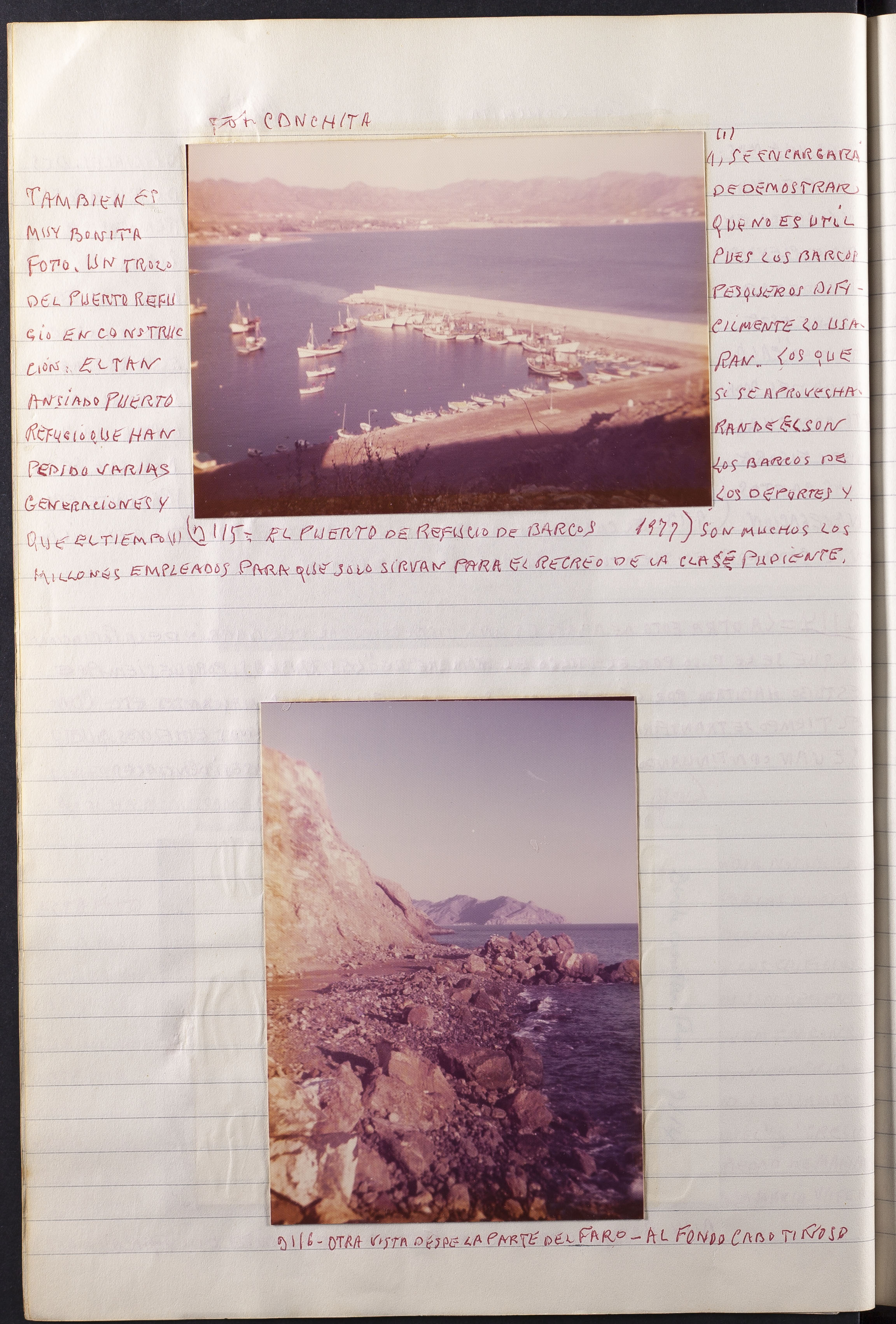 Fotografía 3115: EL PUERTO DE REFUGIO DE BARCOS 1977. Figura escrito a mano el origen de la fotografía: Fot. CONCHI. Dimensiones: 9 x 12,3 cm