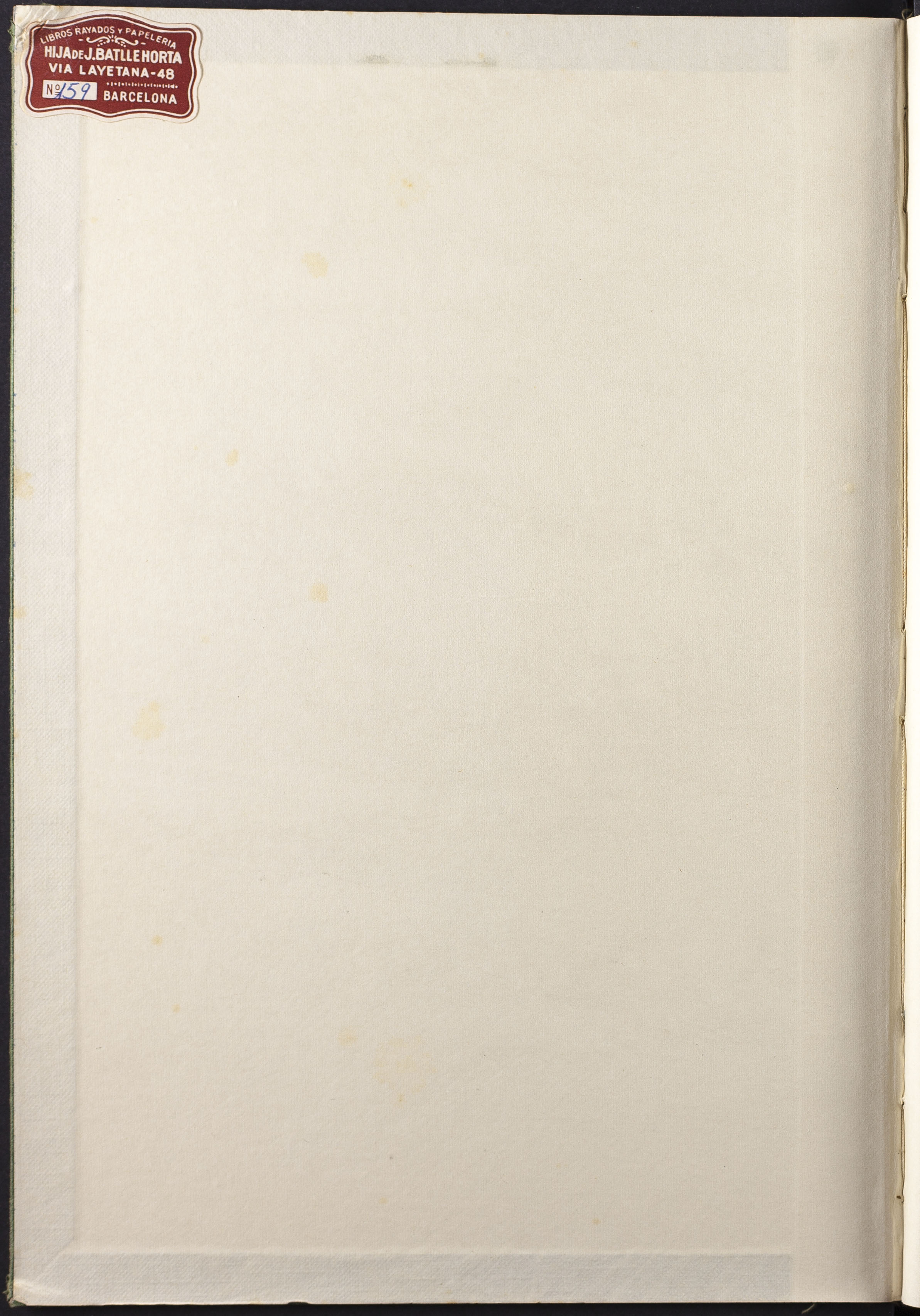 Etiqueta: LIBROS RAYADOS Y PAPELERÍA. HIJA DE J. BATTLE HORTA. VÍA LAYETANA, 48. Nº159. BARCELONA.
