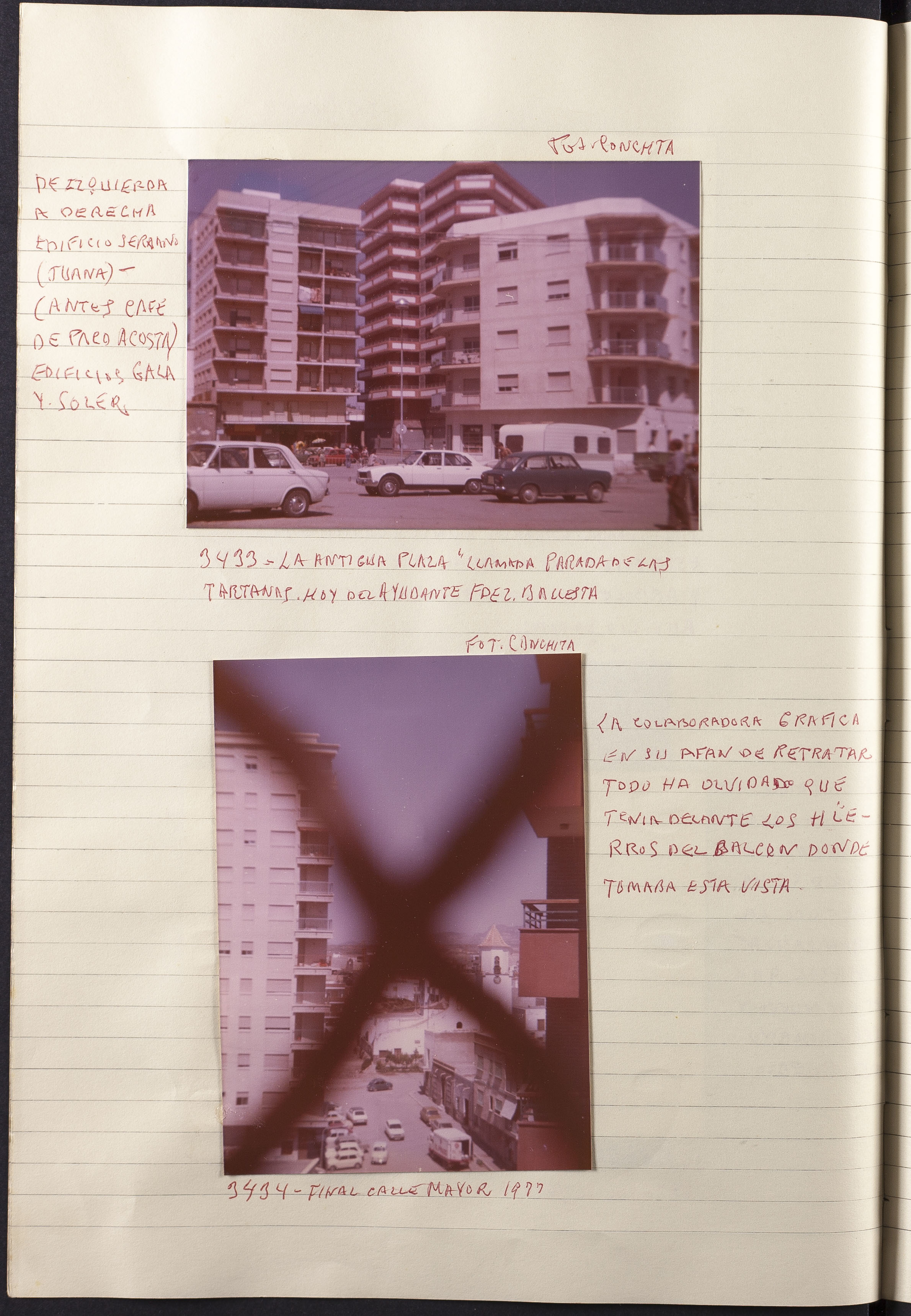 Papel con información manuscrita a bolígrafo tamaño 22 x31 cm. Incluye fotografías policromas en diferentes tamaños que se especifican en el Alcance y contenido.