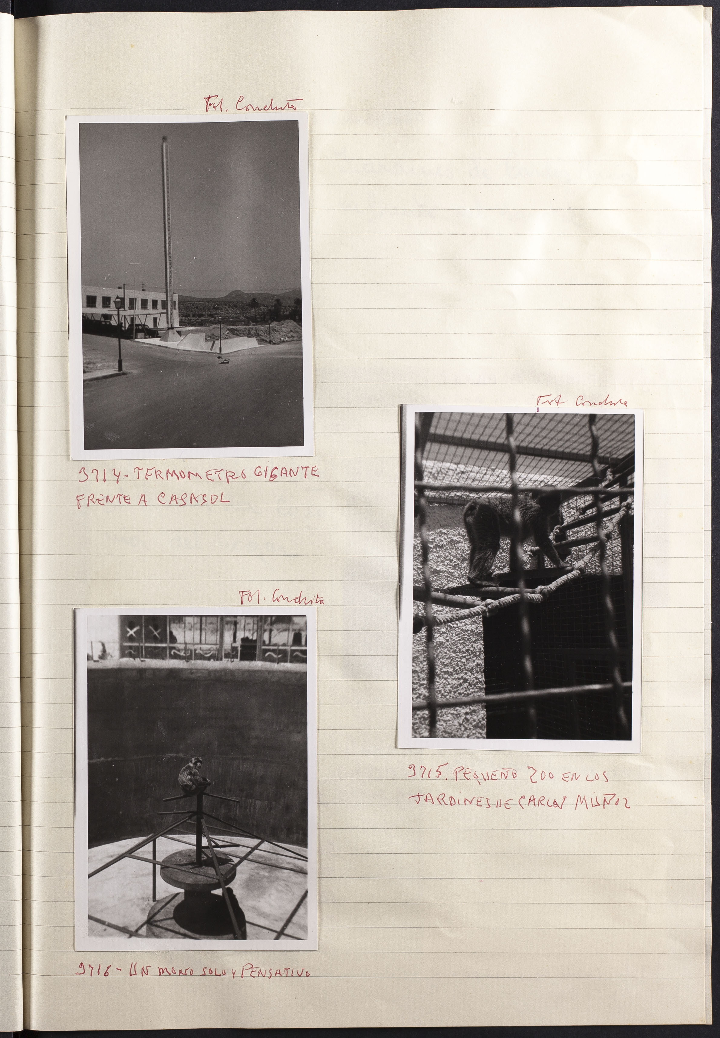 Papel con información manuscrita a bolígrafo tamaño 22 x31 cm. Incluye fotografías monocromas en diferentes tamaños que se especifican en el Alcance y contenido.