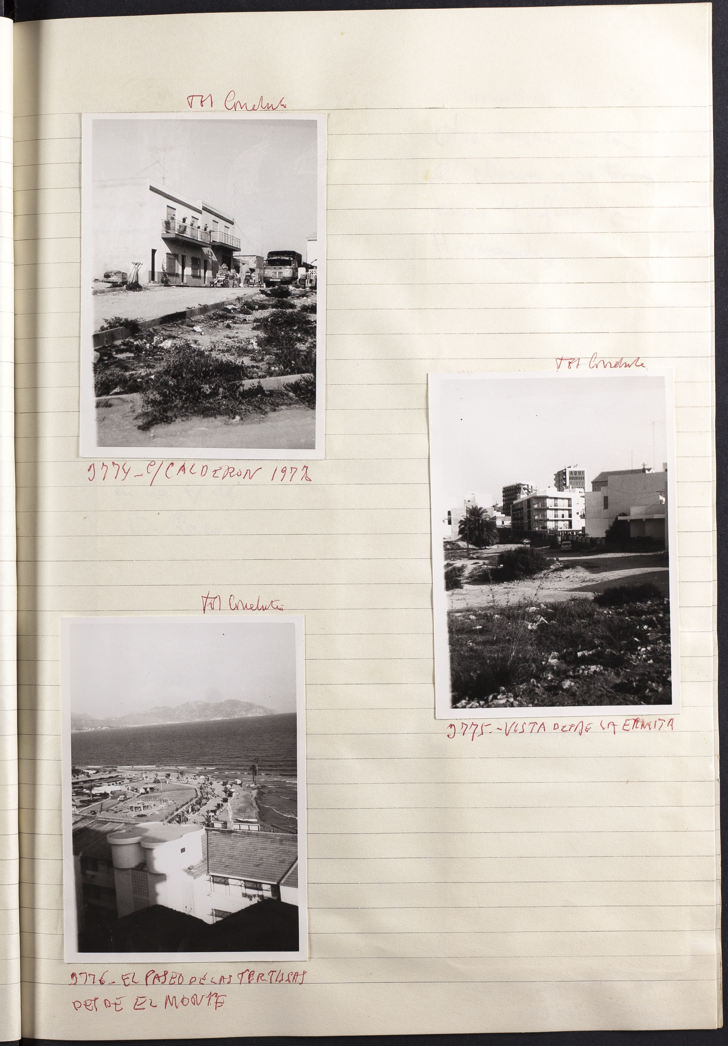 Papel con información manuscrita a bolígrafo tamaño 22 x31 cm. Incluye fotografías monocromas en diferentes tamaños que se especifican en el Alcance y contenido.