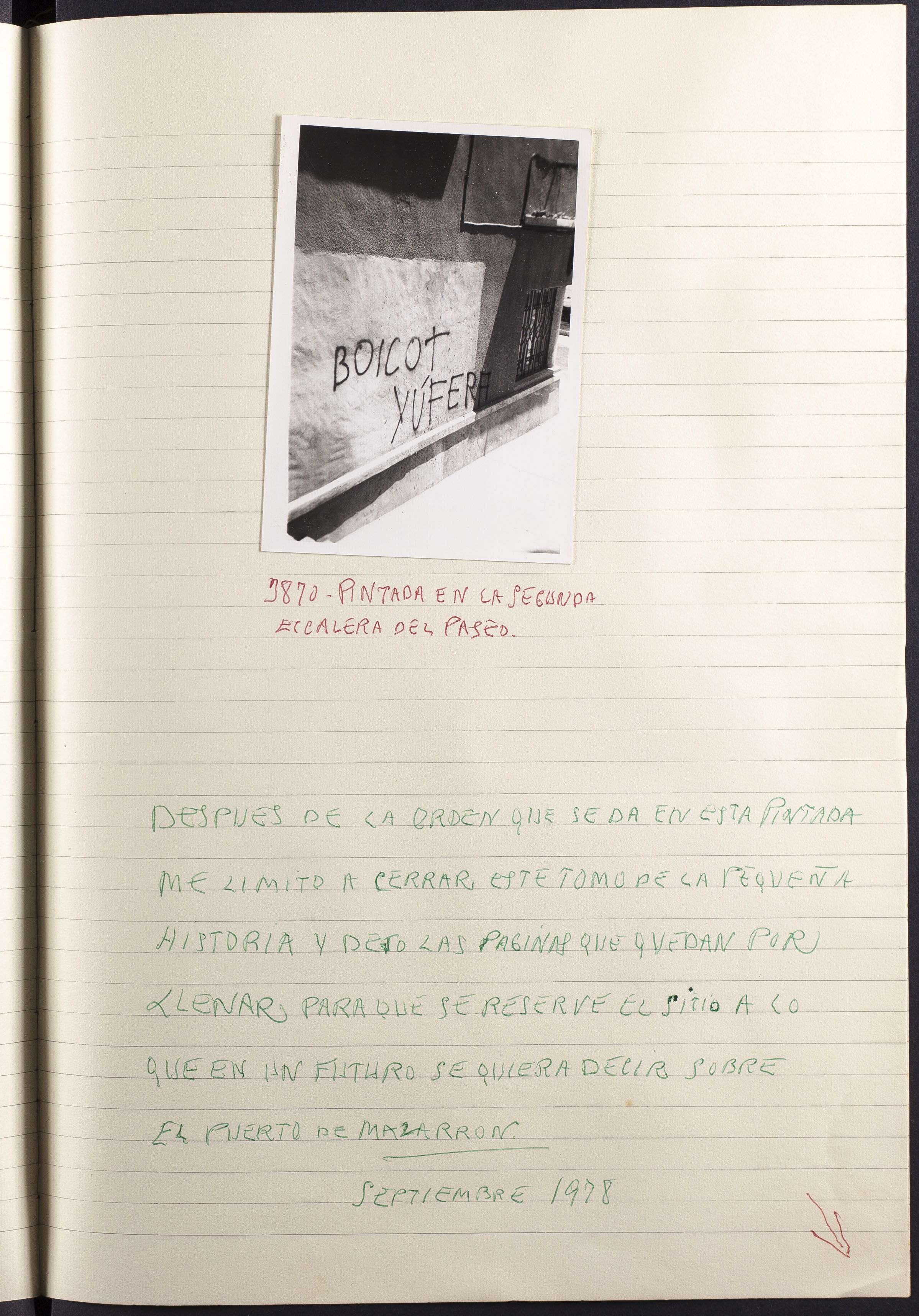 Fotografía 3870: PINTADA EN LA SEGUNDA ESCALERA DEL PASEO. En la fotografía se lee: BOICOT YÚFERA. Dimensiones: 10,5 x 7,5 cm