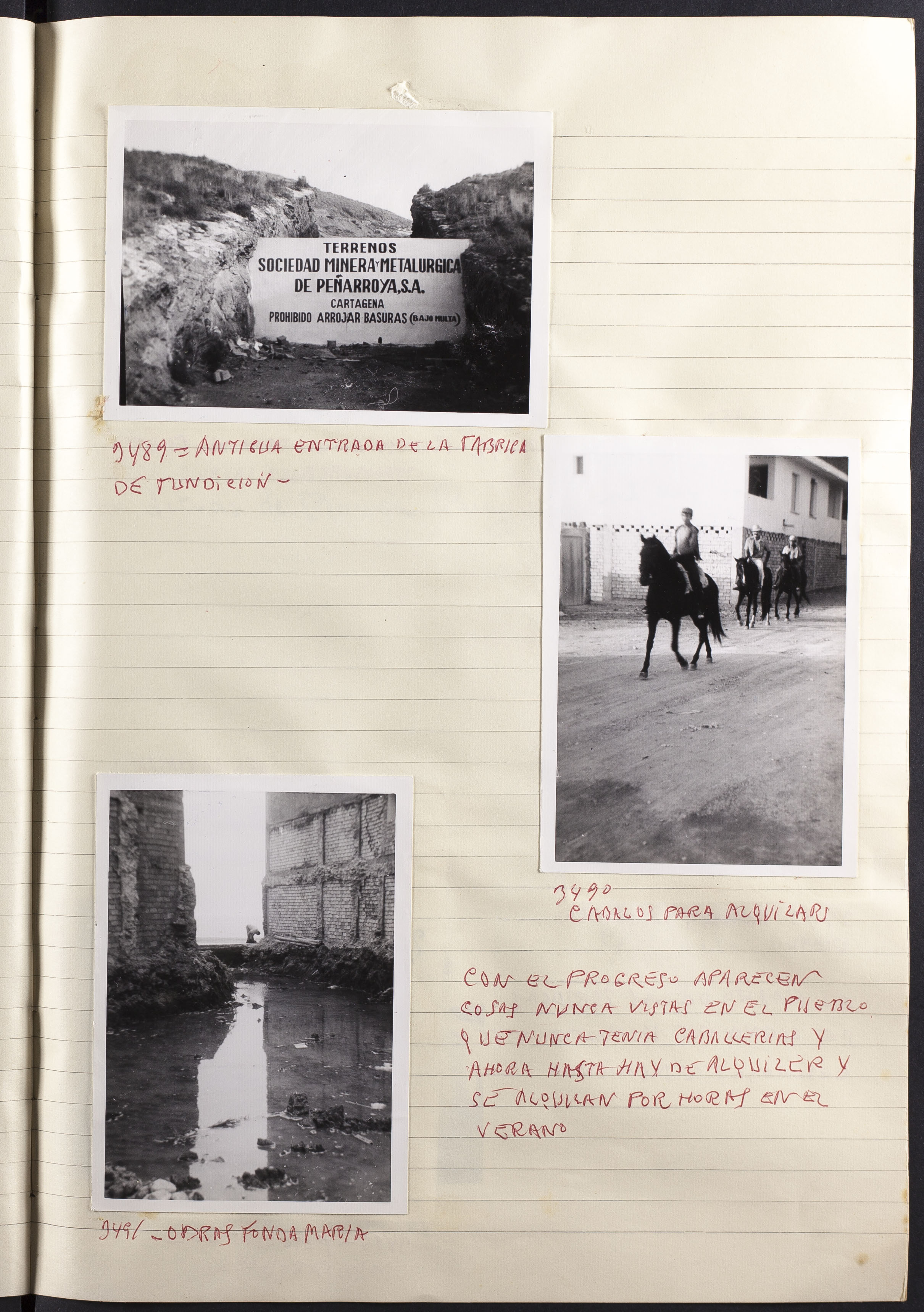 Papel con información manuscrita a bolígrafo tamaño 22 x31 cm. Incluye fotografías monocromas en diferentes tamaños que se especifican en el Alcance y contenido.
