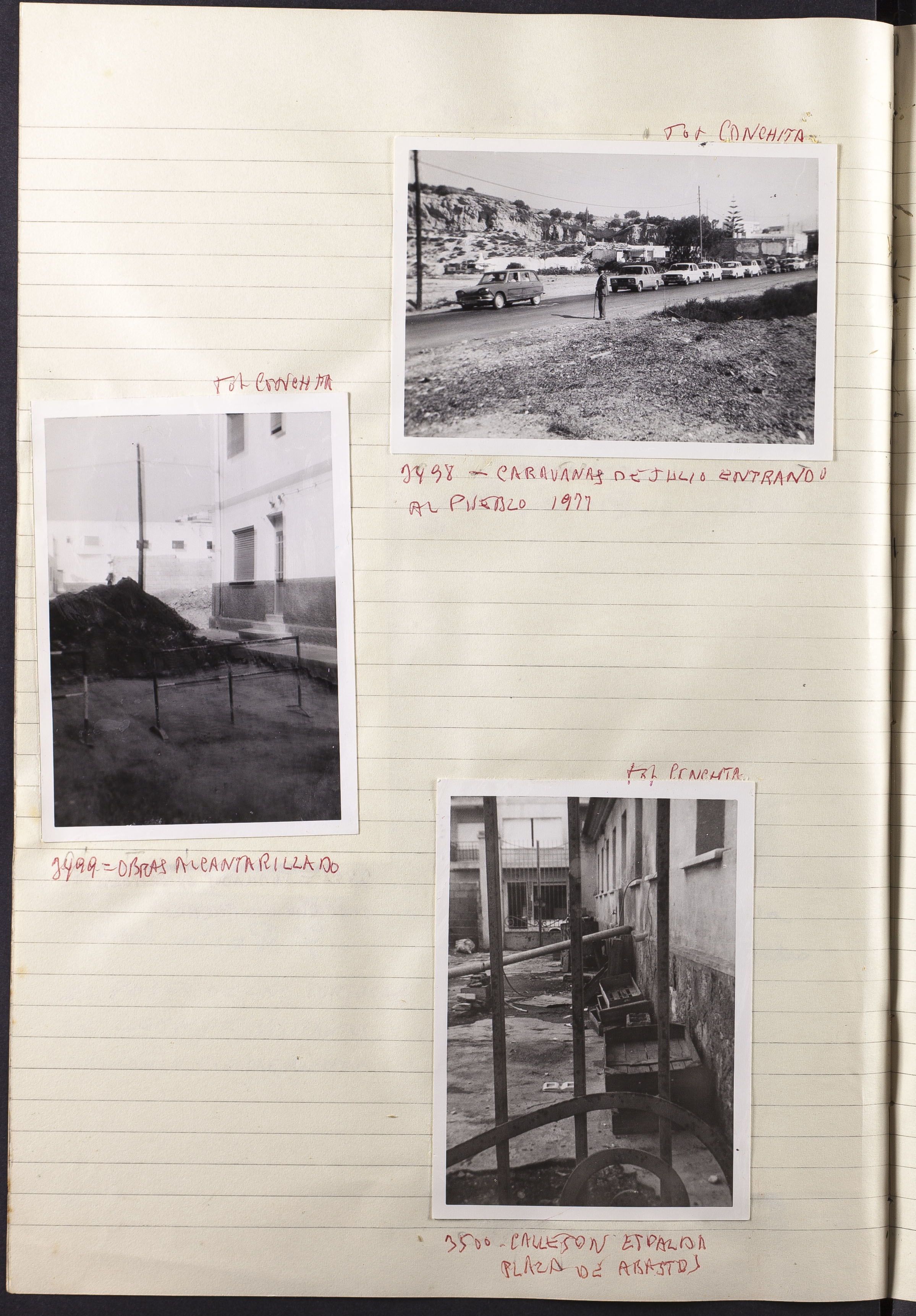 Papel con información manuscrita a bolígrafo tamaño 22 x31 cm. Incluye fotografías monocromas en diferentes tamaños que se especifican en el Alcance y contenido.