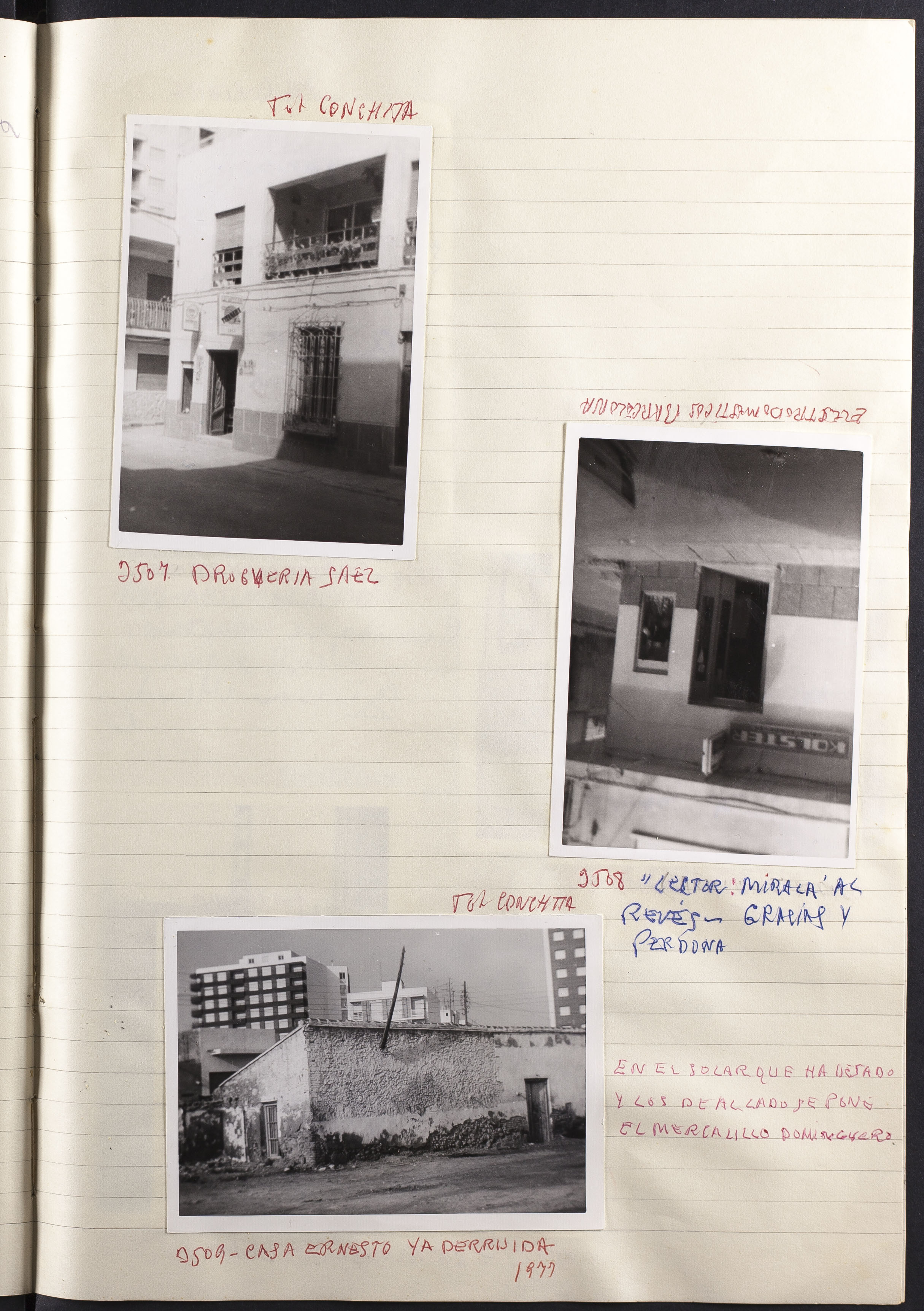 Fotografía 3509: CASA ERNESTO YA DERRUIDA 1977. Figura escrito a mano el origen de la fotografía: Fot. Conchita. Dimensiones: 7,5 x 10,5 cm