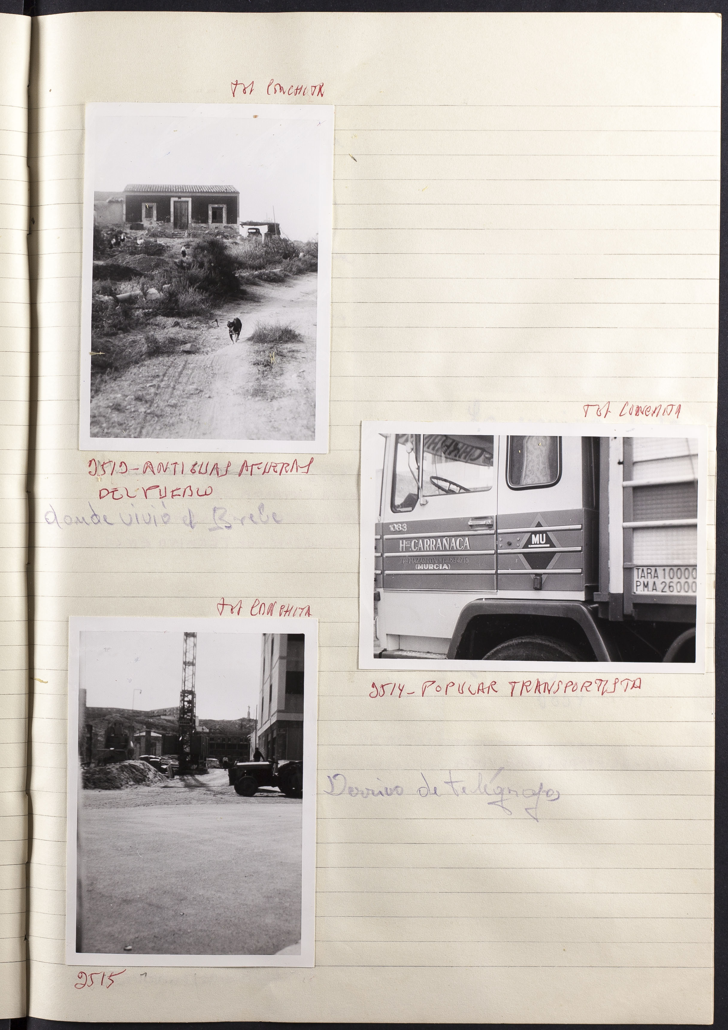 Papel con información manuscrita a bolígrafo tamaño 22 x31 cm. Incluye fotografías monocromas en diferentes tamaños que se especifican en el Alcance y contenido.