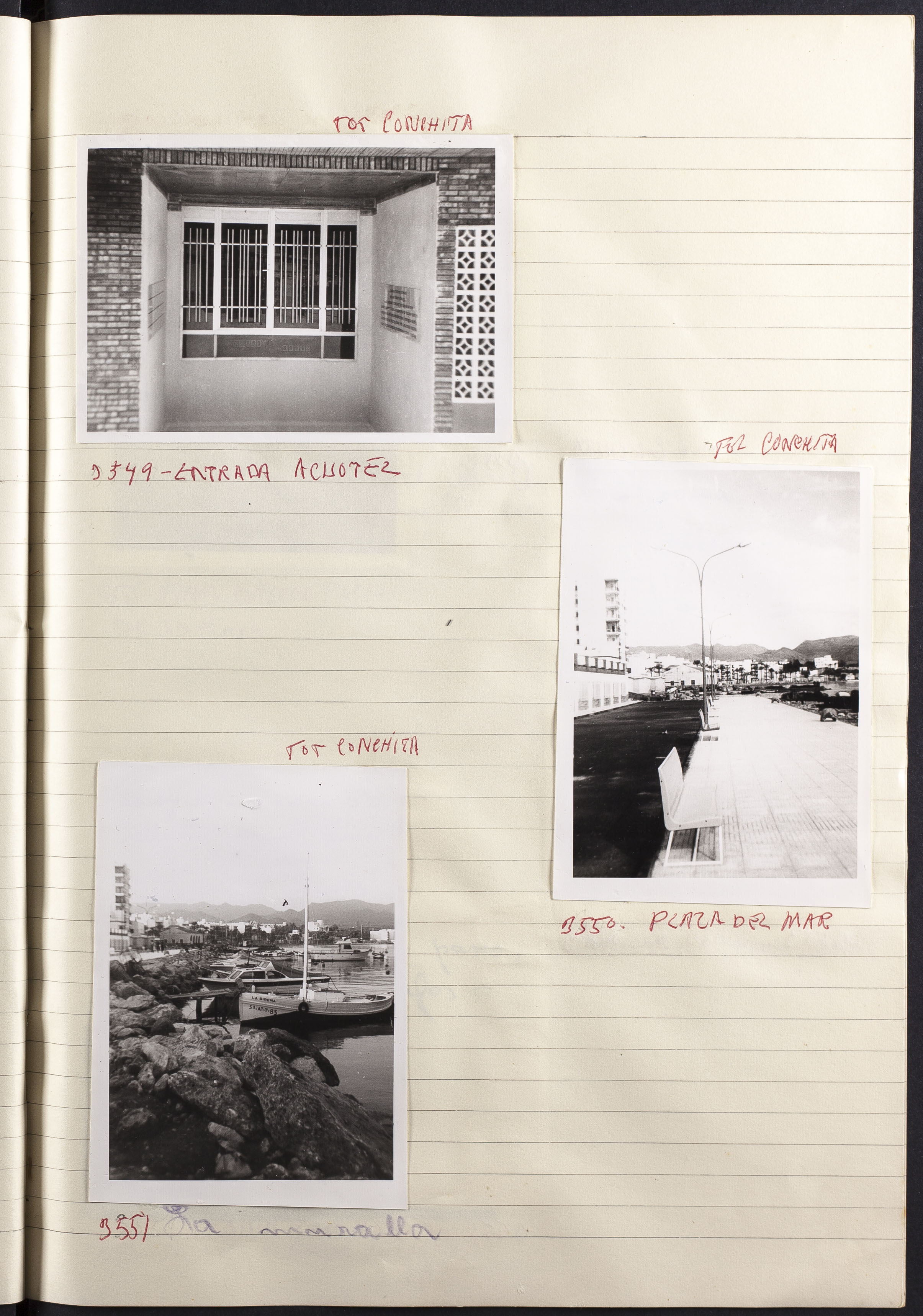Papel con información manuscrita a bolígrafo tamaño 22 x31 cm. Incluye fotografías monocromas en diferentes tamaños que se especifican en el Alcance y contenido.