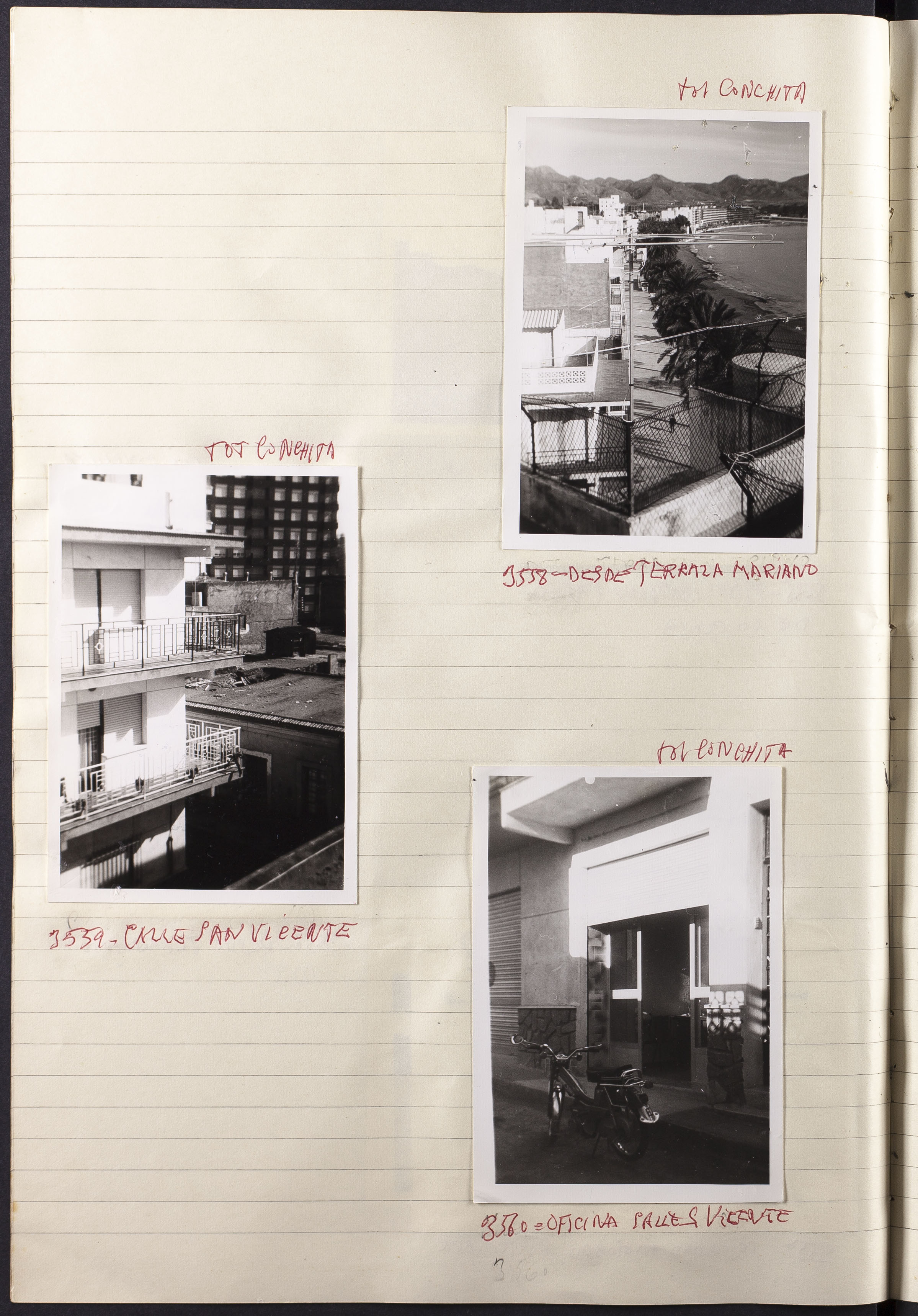 Papel con información manuscrita a bolígrafo tamaño 22 x31 cm. Incluye fotografías monocromas en diferentes tamaños que se especifican en el Alcance y contenido.