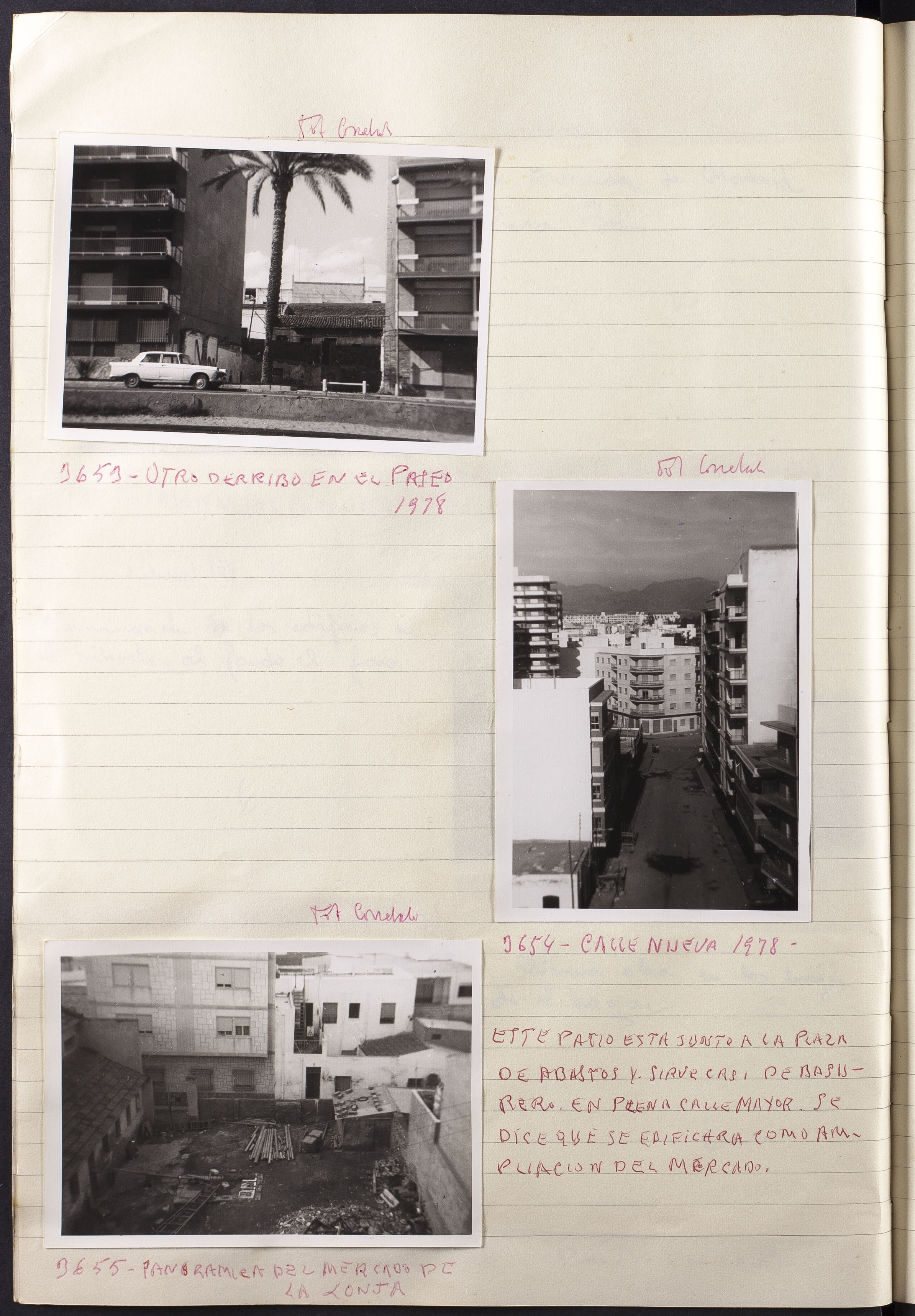 Papel con información manuscrita a bolígrafo tamaño 22 x31 cm. Incluye fotografías monocromas en diferentes tamaños que se especifican en el Alcance y contenido.