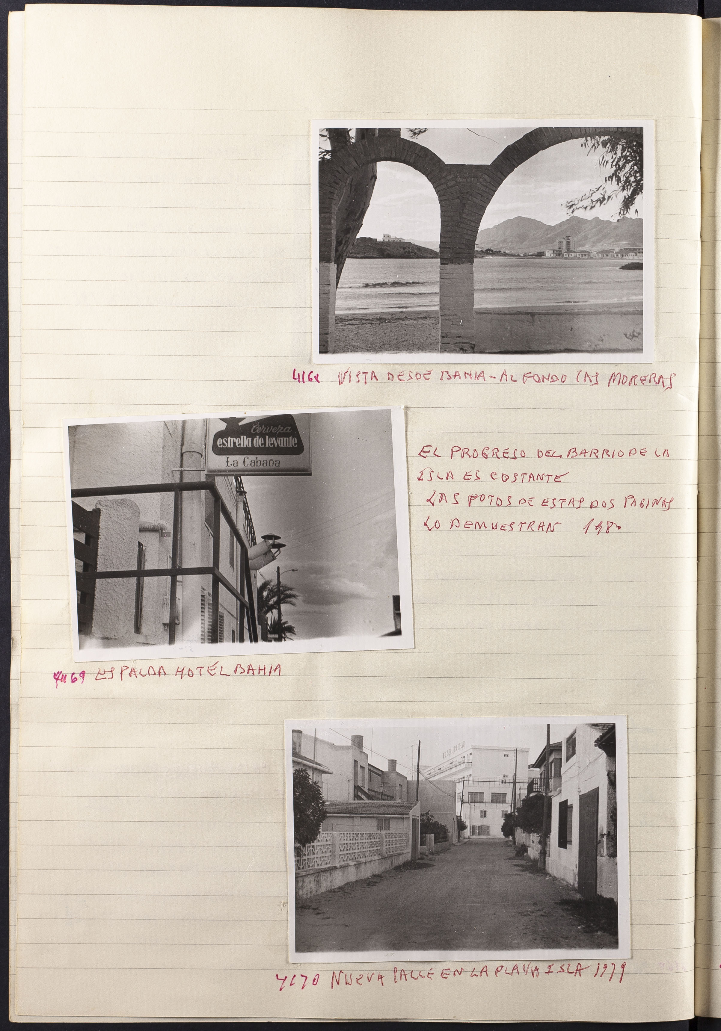 Papel con información manuscrita a bolígrafo tamaño 22 x31 cm. Incluye fotografías monocromas en diferentes tamaños que se especifican en el Alcance y contenido.