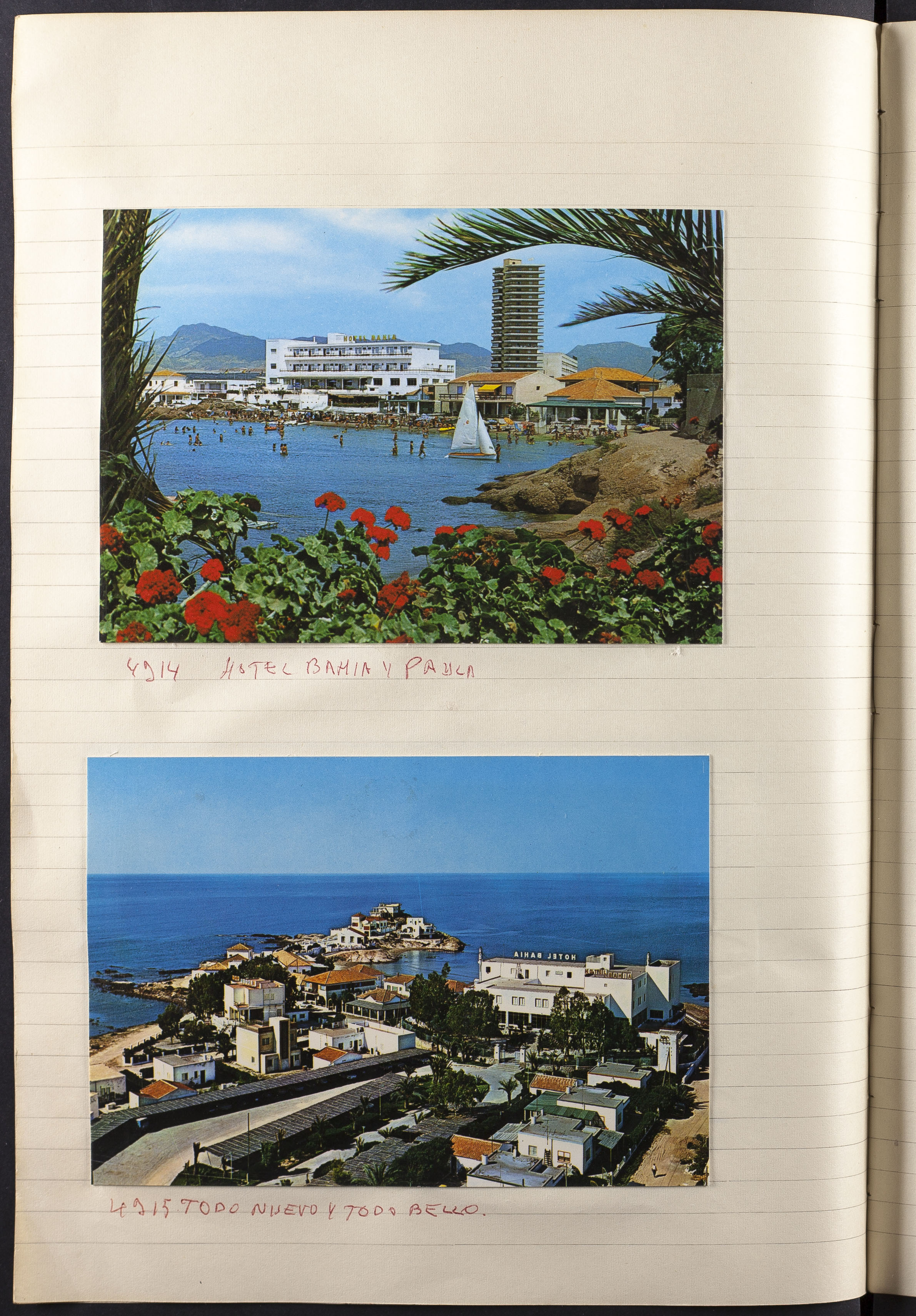 Papel con información manuscrita a bolígrafo tamaño 22 x31 cm. Incluye fotografías policromas en diferentes tamaños que se especifican en el Alcance y contenido.