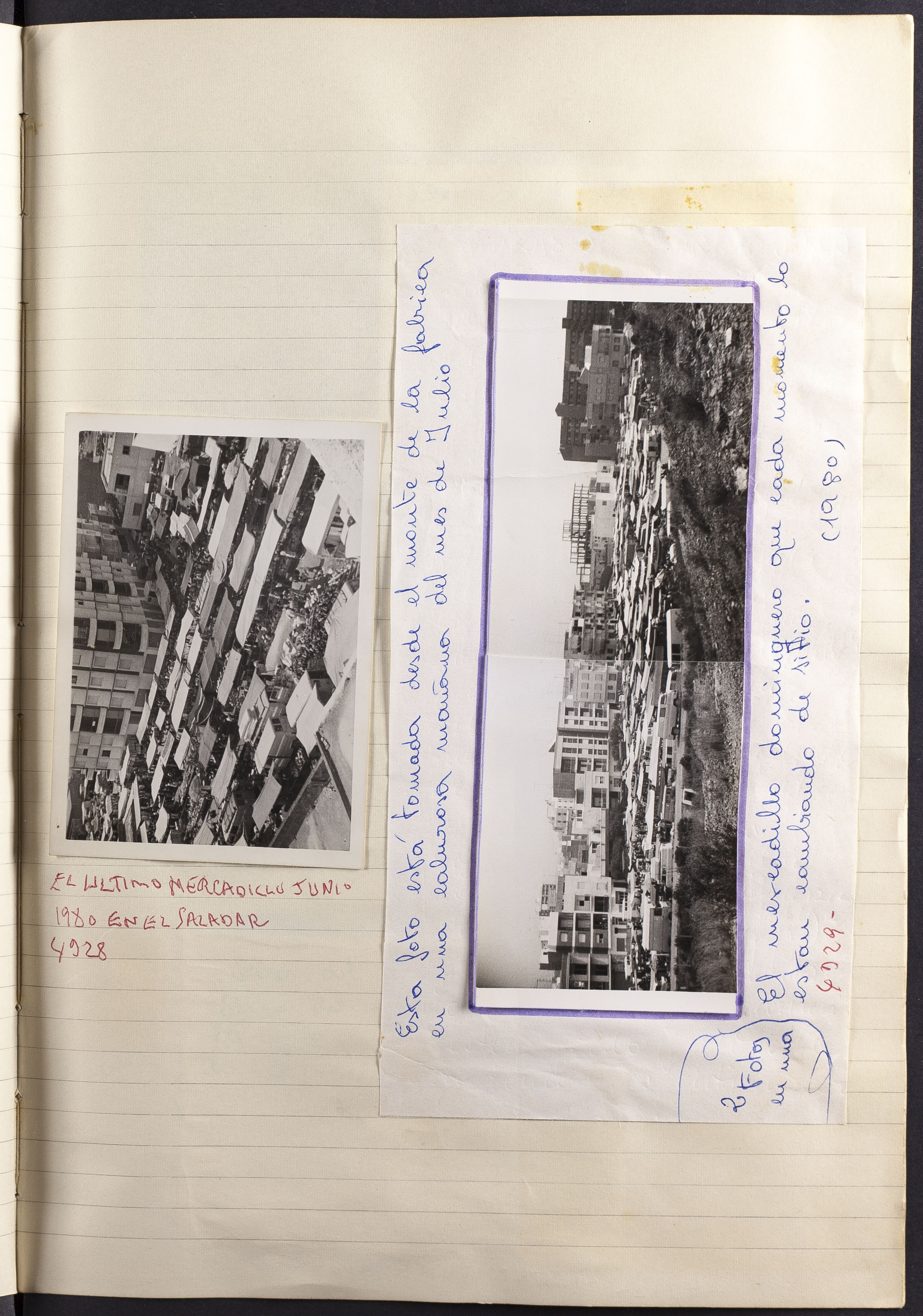Papel con información manuscrita a bolígrafo tamaño 22 x31 cm. Incluye fotografías monocromas en diferentes tamaños que se especifican en el Alcance y contenido.