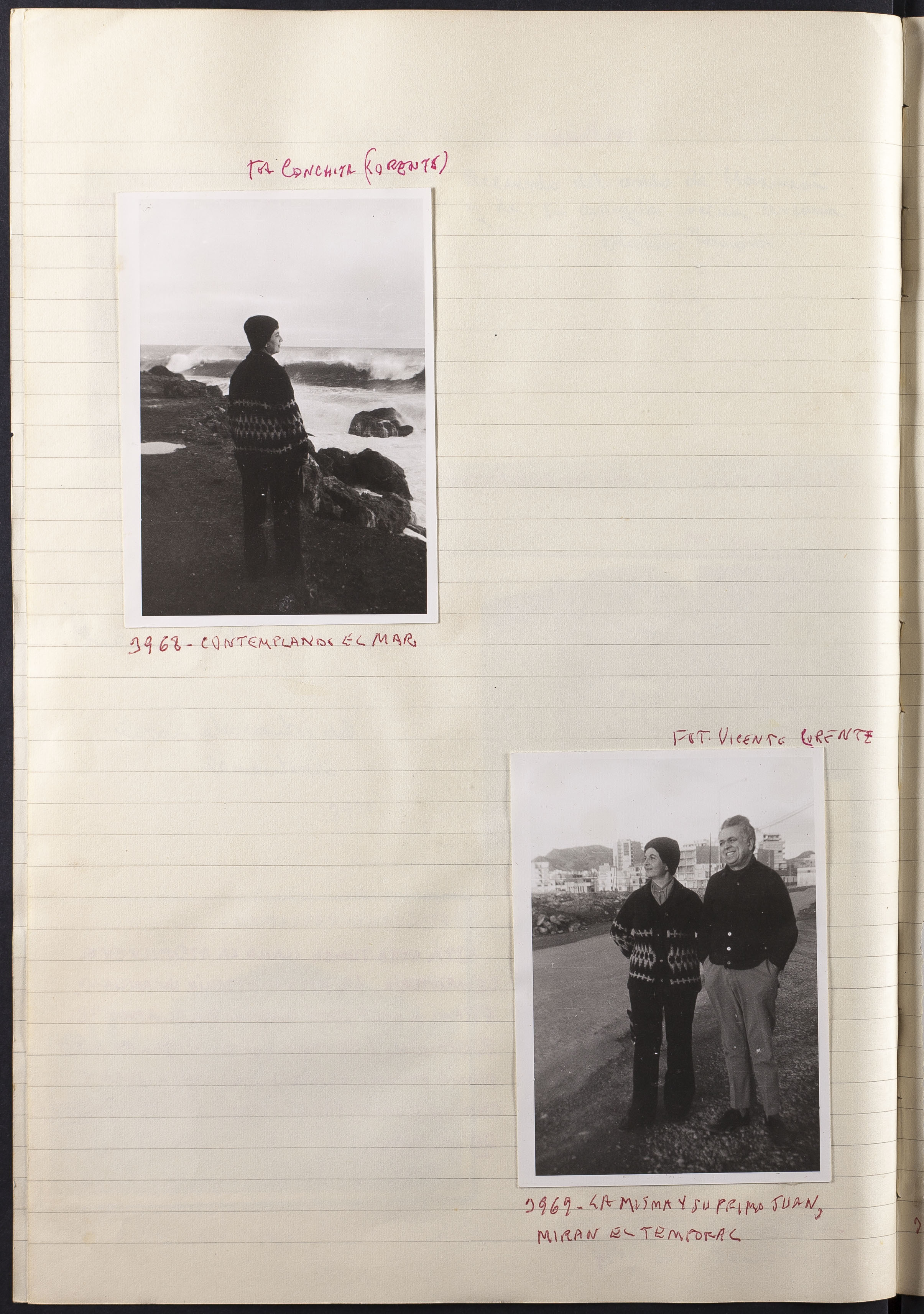 Papel con información manuscrita a bolígrafo tamaño 22 x31 cm. Incluye fotografías monocromas en diferentes tamaños que se especifican en el Alcance y contenido.
