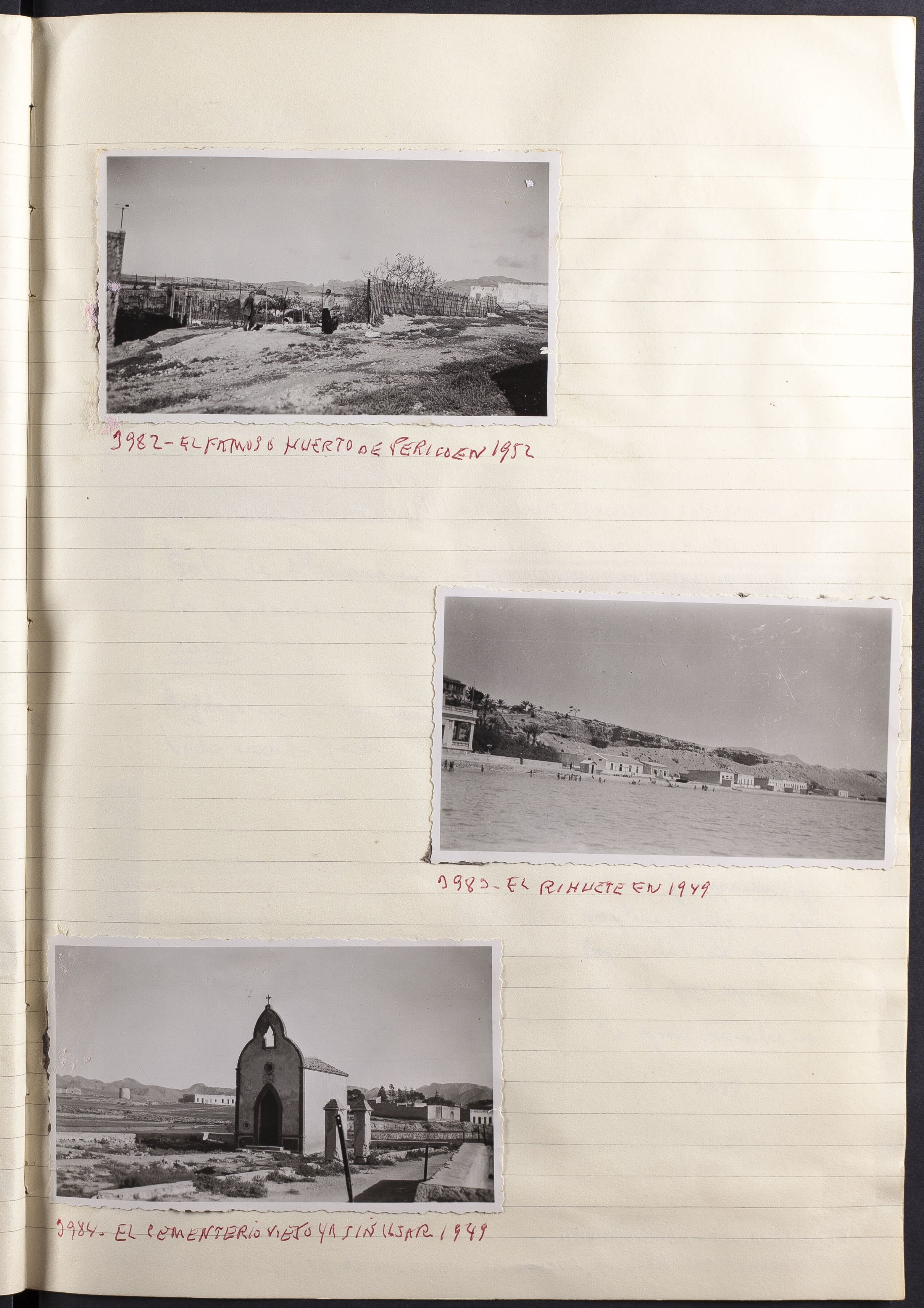 Papel con información manuscrita a bolígrafo tamaño 22 x31 cm. Incluye fotografías monocromas en diferentes tamaños que se especifican en el Alcance y contenido.