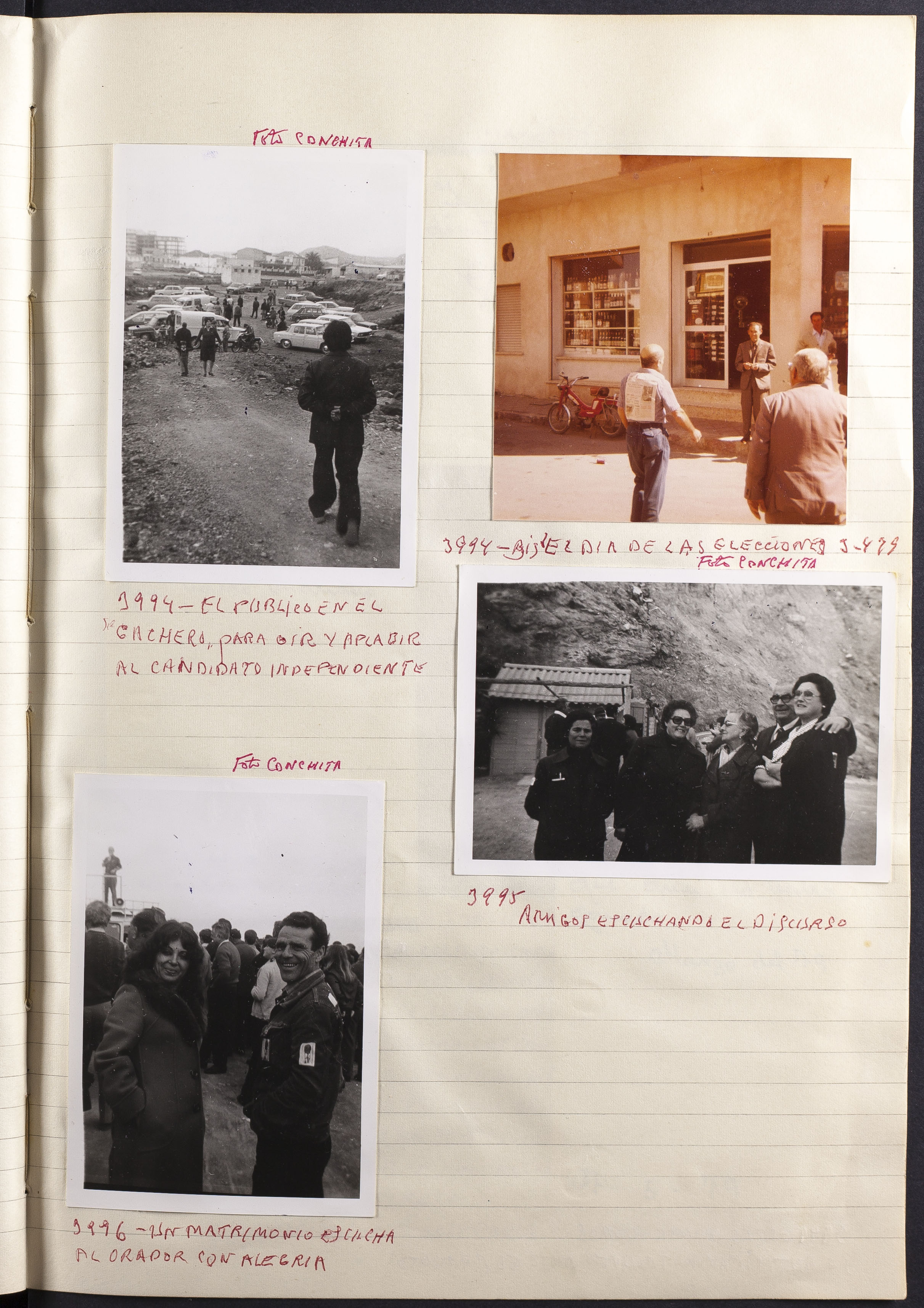 Papel con información manuscrita a bolígrafo tamaño 22 x31 cm. Incluye fotografías monocromas y policromas en diferentes tamaños que se especifican en el Alcance y contenido.