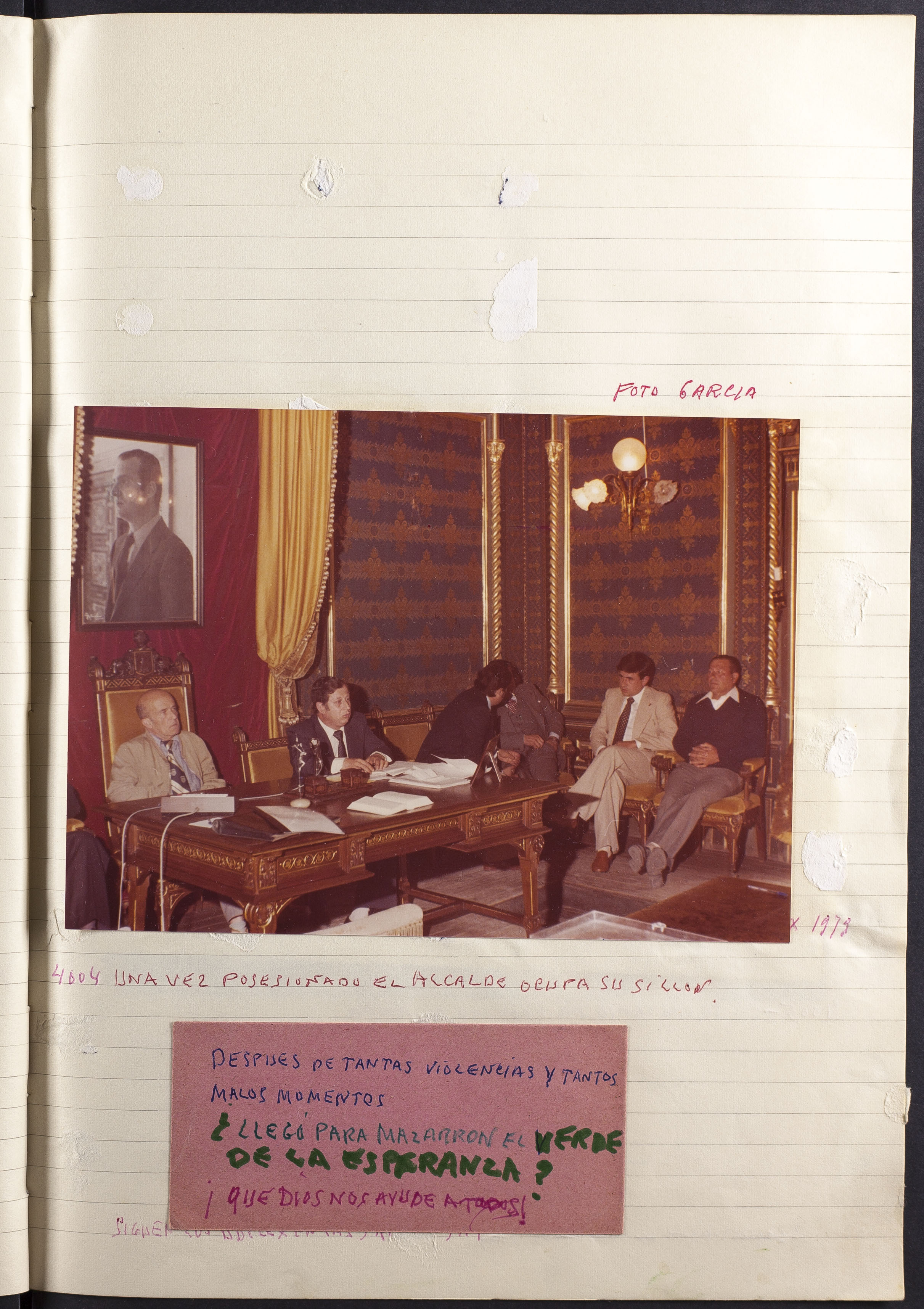 Fotografía 4004: UNA VEZ POSESIONADO EL ALCALDE OCUPA SU SILLÓN. Figura escrito a mano el origen de la fotografía: Fot. García. Dimensiones: 13 x 17,5 cm