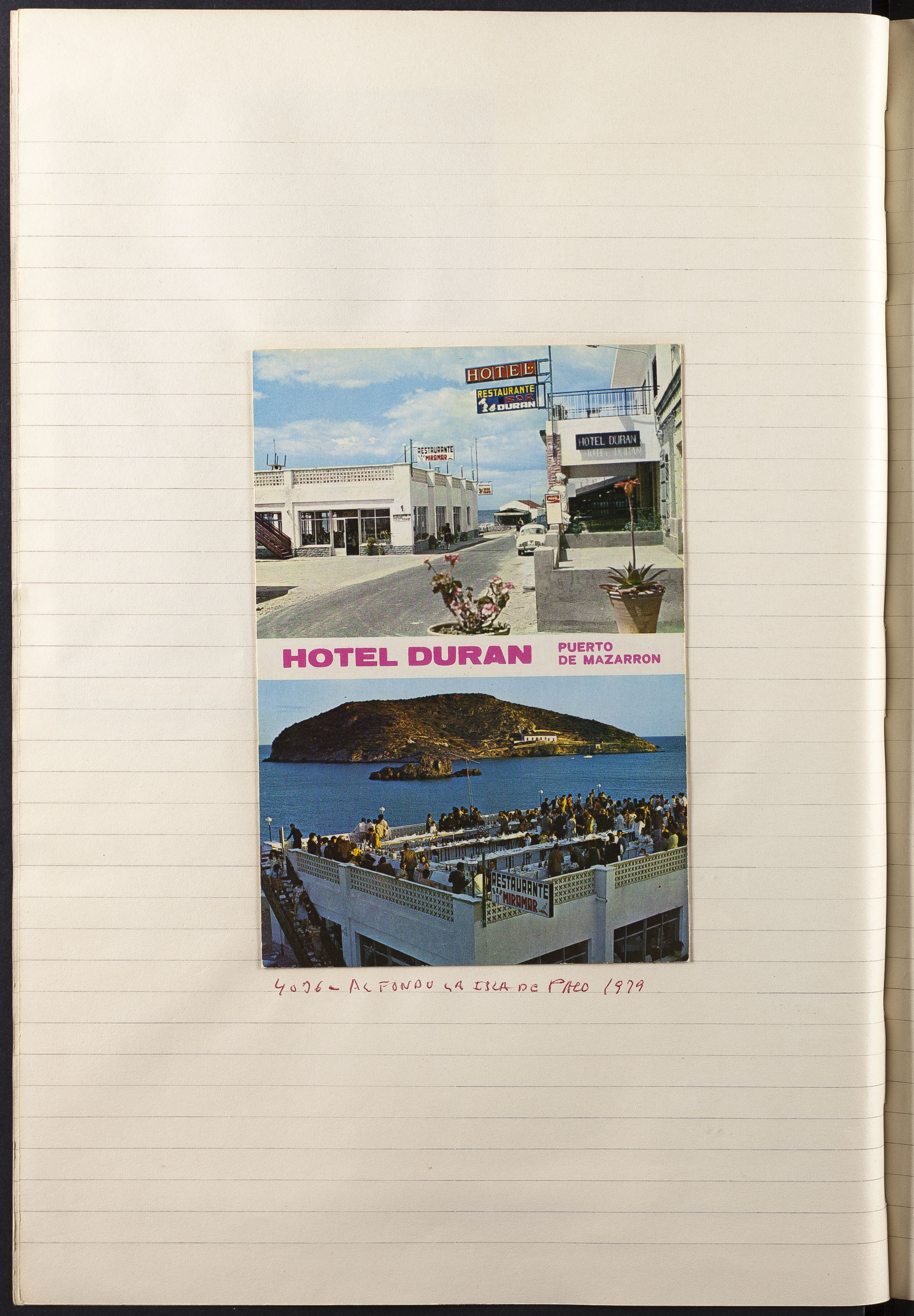 Fotografía 4036: AL FONDO LA ISLA DE PACO 1979. HOTEL DURÁN PUERTO DE MAZARRÓN. Figura escrito a mano el origen de la fotografía: Fot. Industrial. Postal fotográfica. Dimensiones: 15 x 10,5 cm