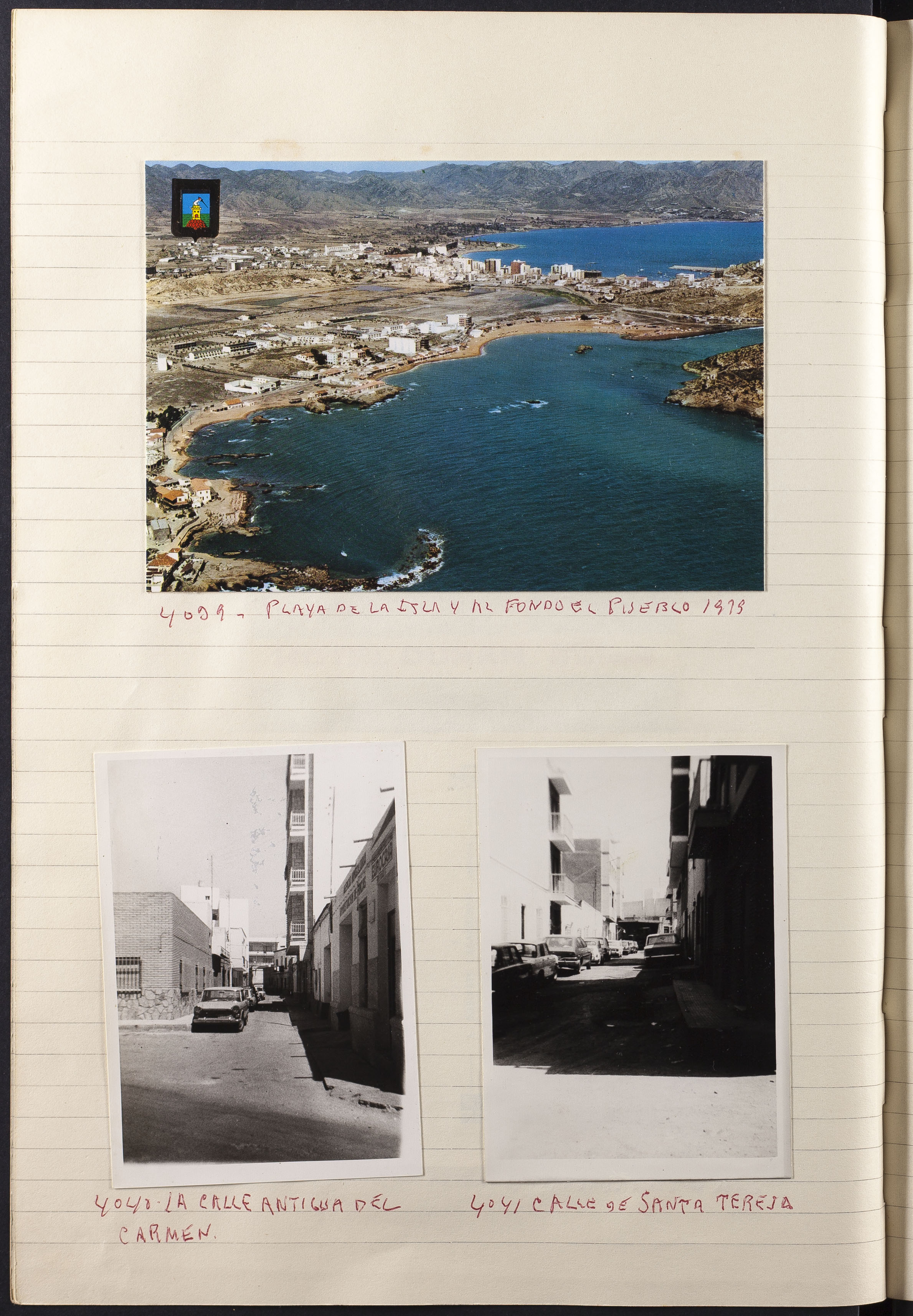 Papel con información manuscrita a bolígrafo tamaño 22 x31 cm. Incluye fotografías policromas y monocromas en diferentes tamaños que se especifican en el Alcance y contenido.