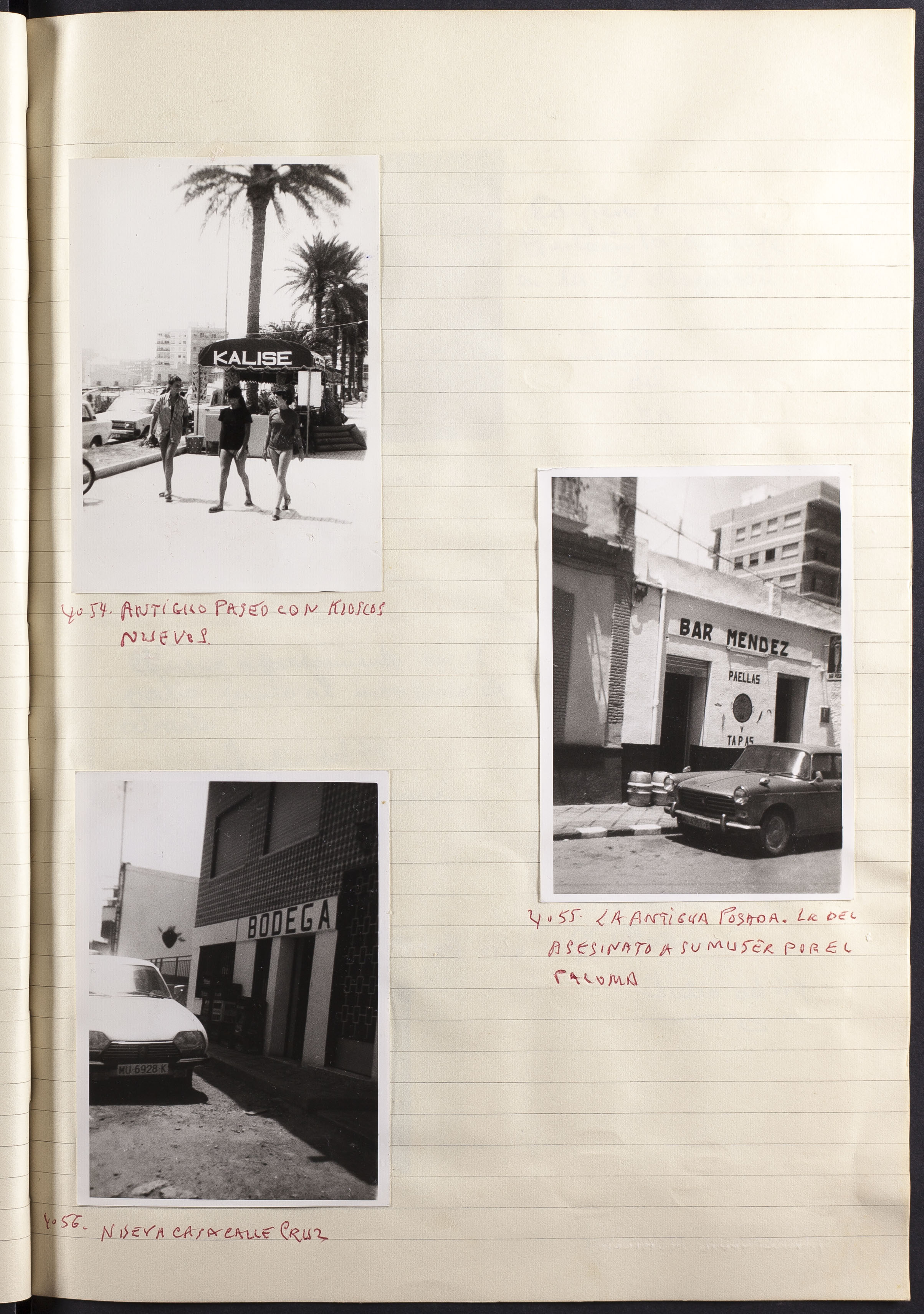 Papel con información manuscrita a bolígrafo tamaño 22 x31 cm. Incluye fotografías monocromas en diferentes tamaños que se especifican en el Alcance y contenido.