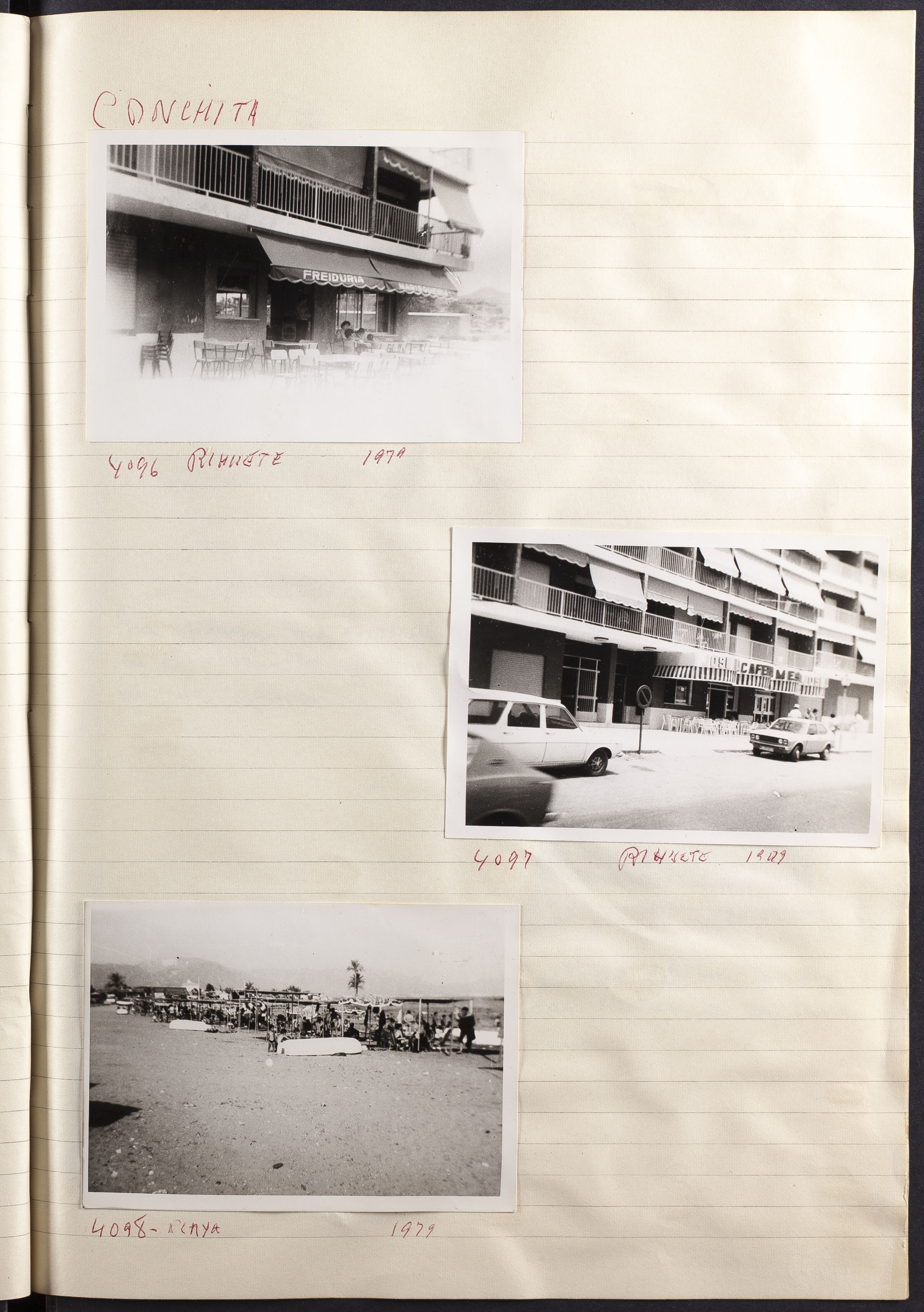 Papel con información manuscrita a bolígrafo tamaño 22 x31 cm. Incluye fotografías monocromas en diferentes tamaños que se especifican en el Alcance y contenido.