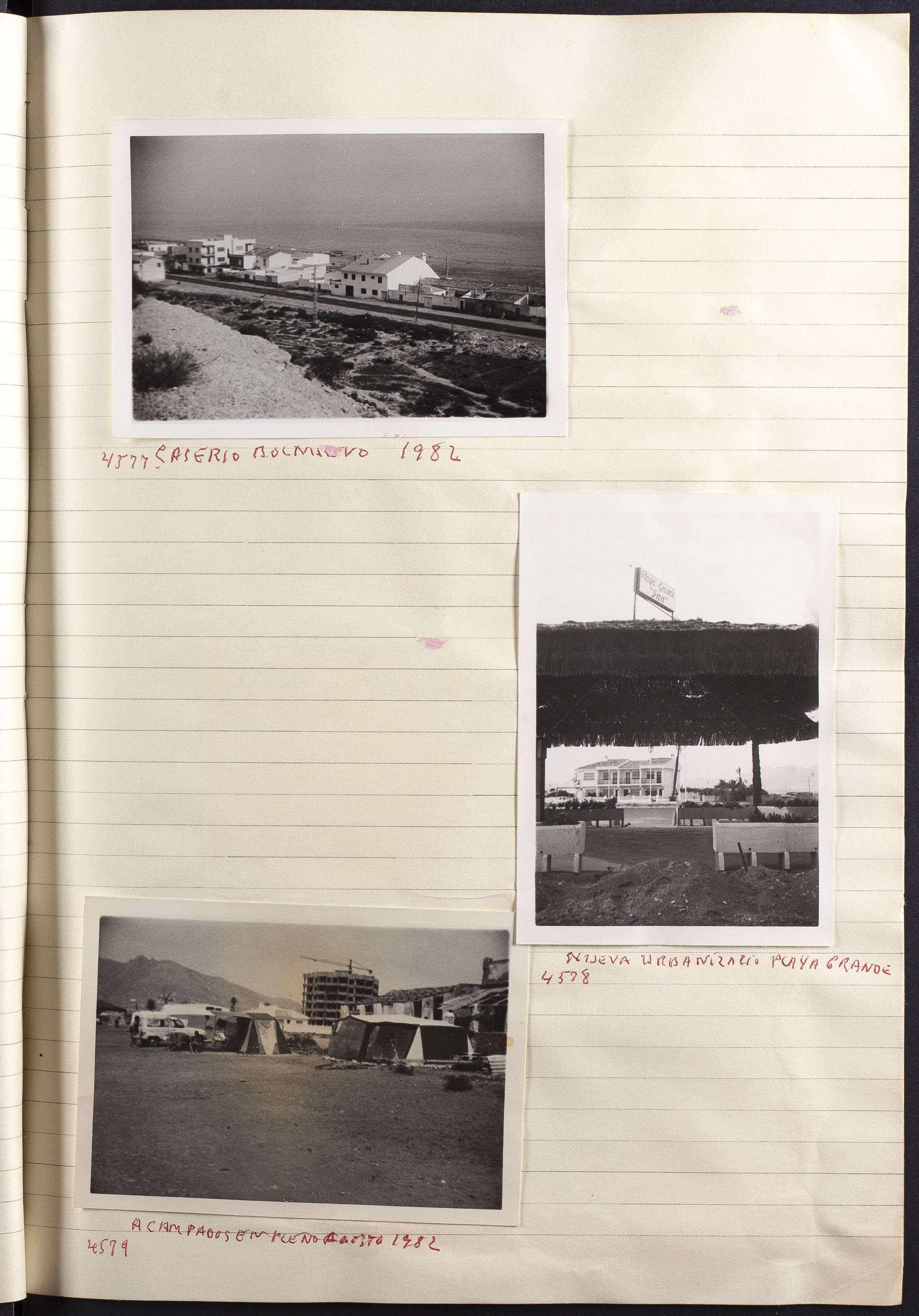 Papel con información manuscrita a bolígrafo tamaño 22 x31 cm. Incluye fotografías monocromas en diferentes tamaños que se especifican en el Alcance y contenido.