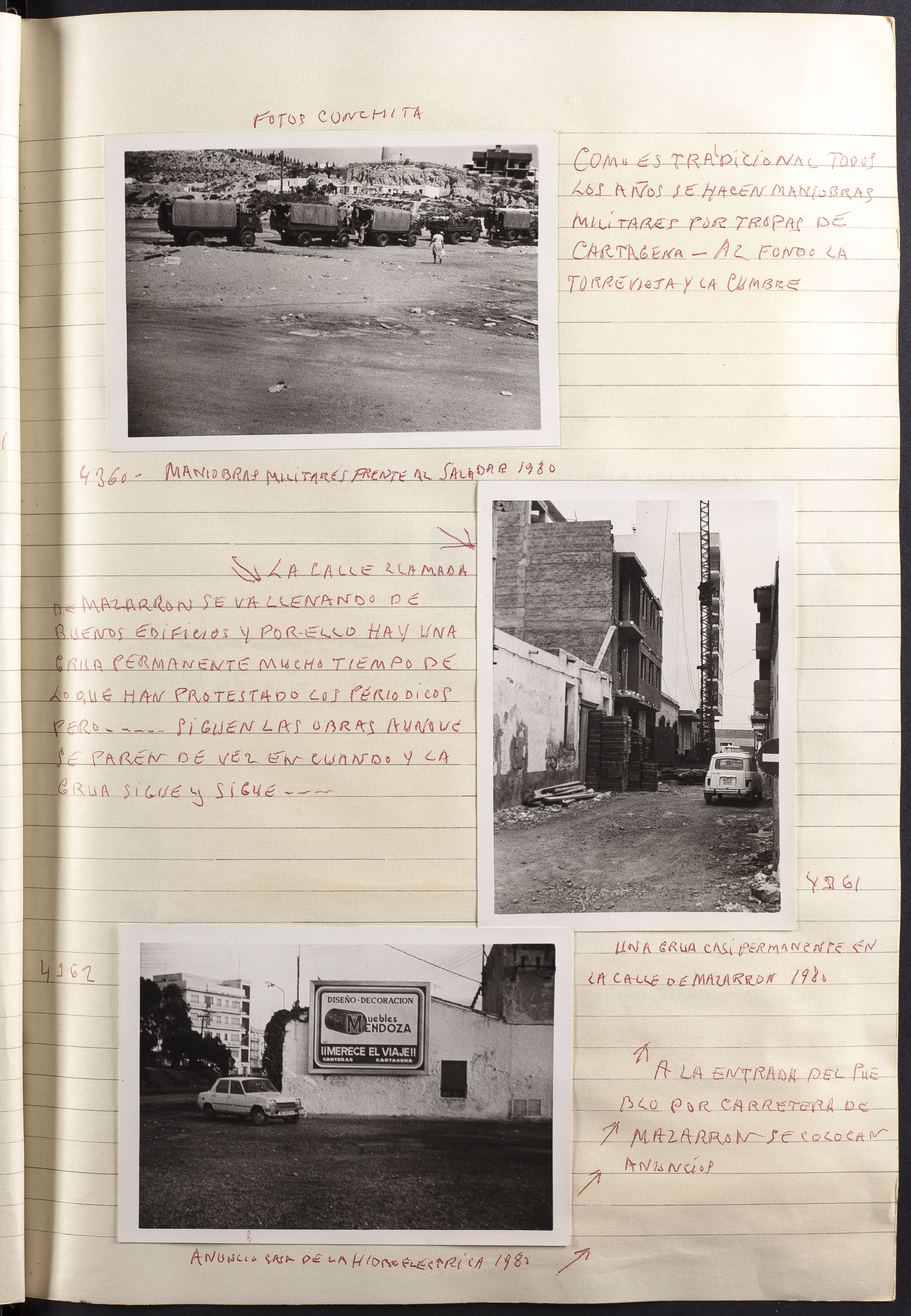 Fotografía 4361: UNA GRÚA CASI PERMANENTE EN LA CALLE DE MAZARRÓN 1980. Dimensiones: 10,5 x 7,5 cm