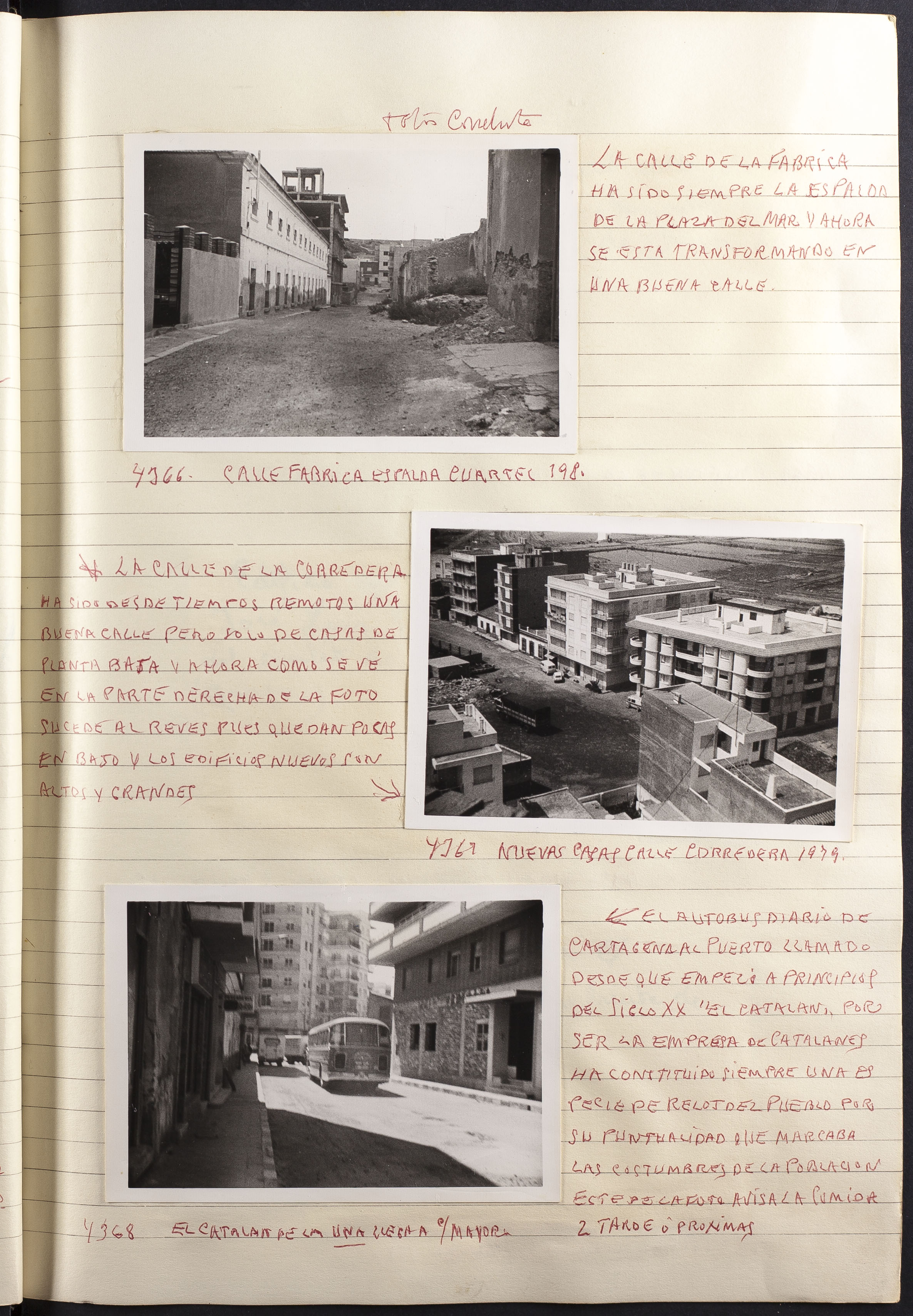 Papel con información manuscrita a bolígrafo tamaño 22 x31 cm. Incluye fotografías monocromas en diferentes tamaños que se especifican en el Alcance y contenido
