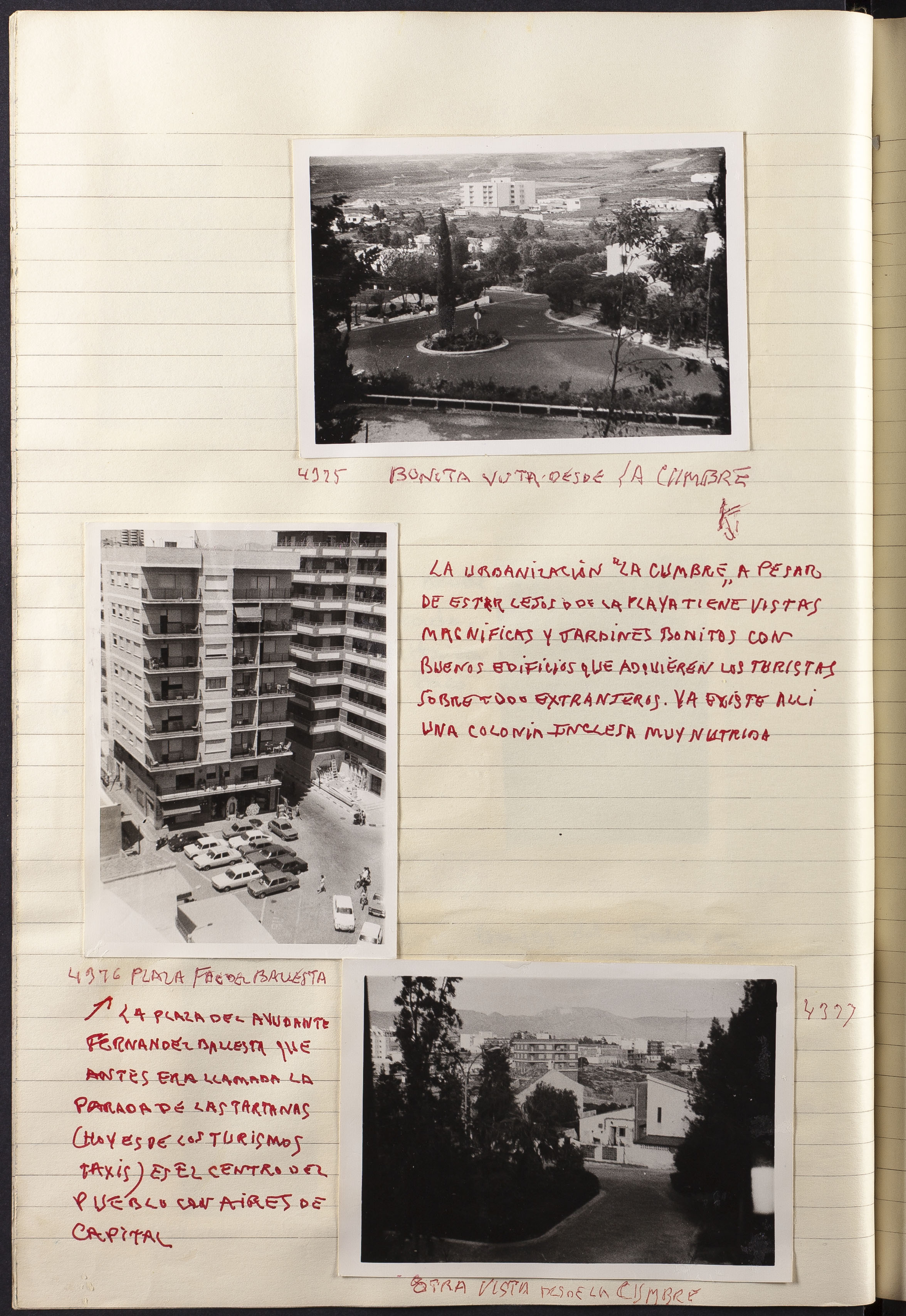 Papel con información manuscrita a bolígrafo tamaño 22 x31 cm. Incluye fotografías monocromas en diferentes tamaños que se especifican en el Alcance y contenido