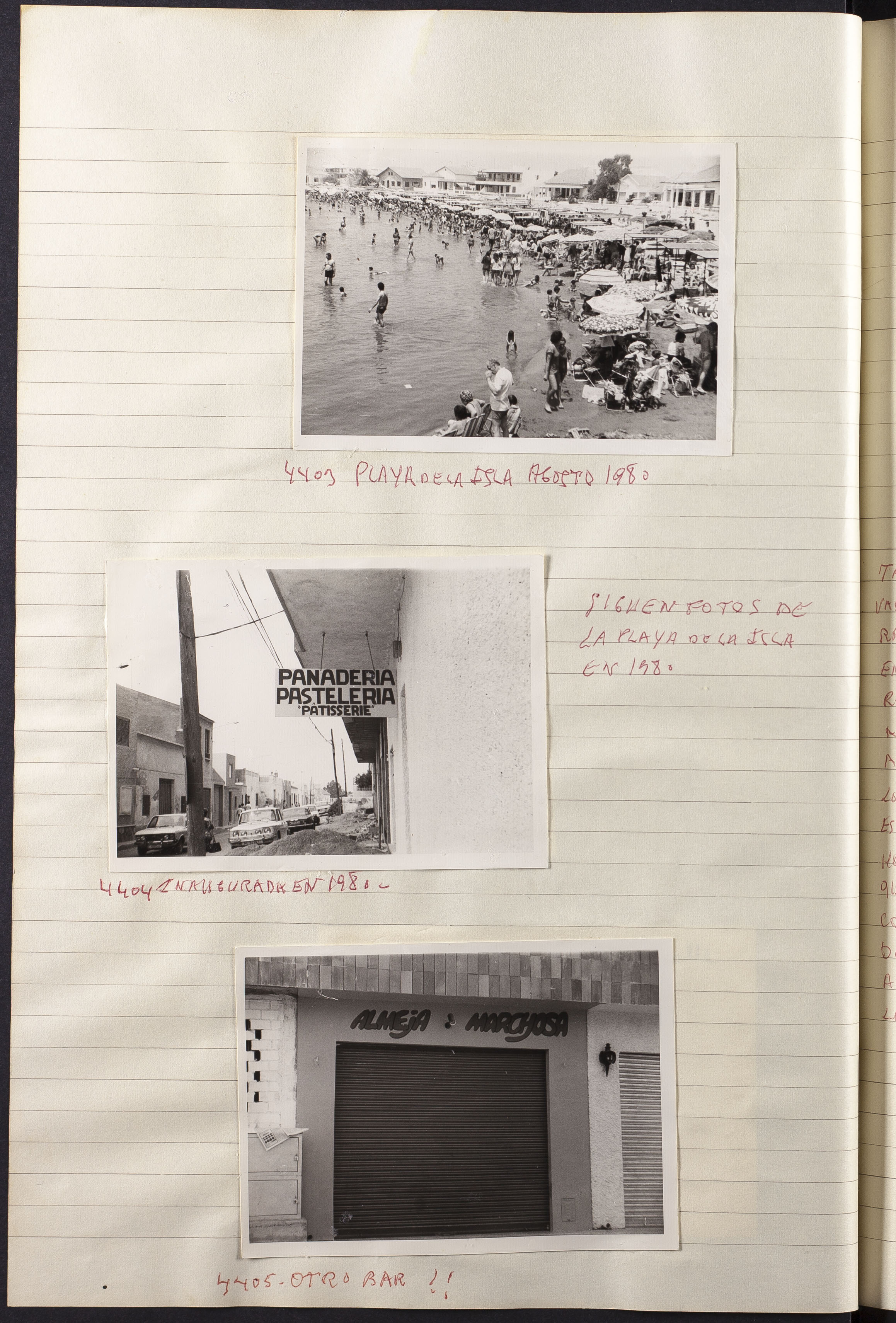 Papel con información manuscrita a bolígrafo tamaño 22 x31 cm. Incluye fotografías monocromas en diferentes tamaños que se especifican en el Alcance y contenido