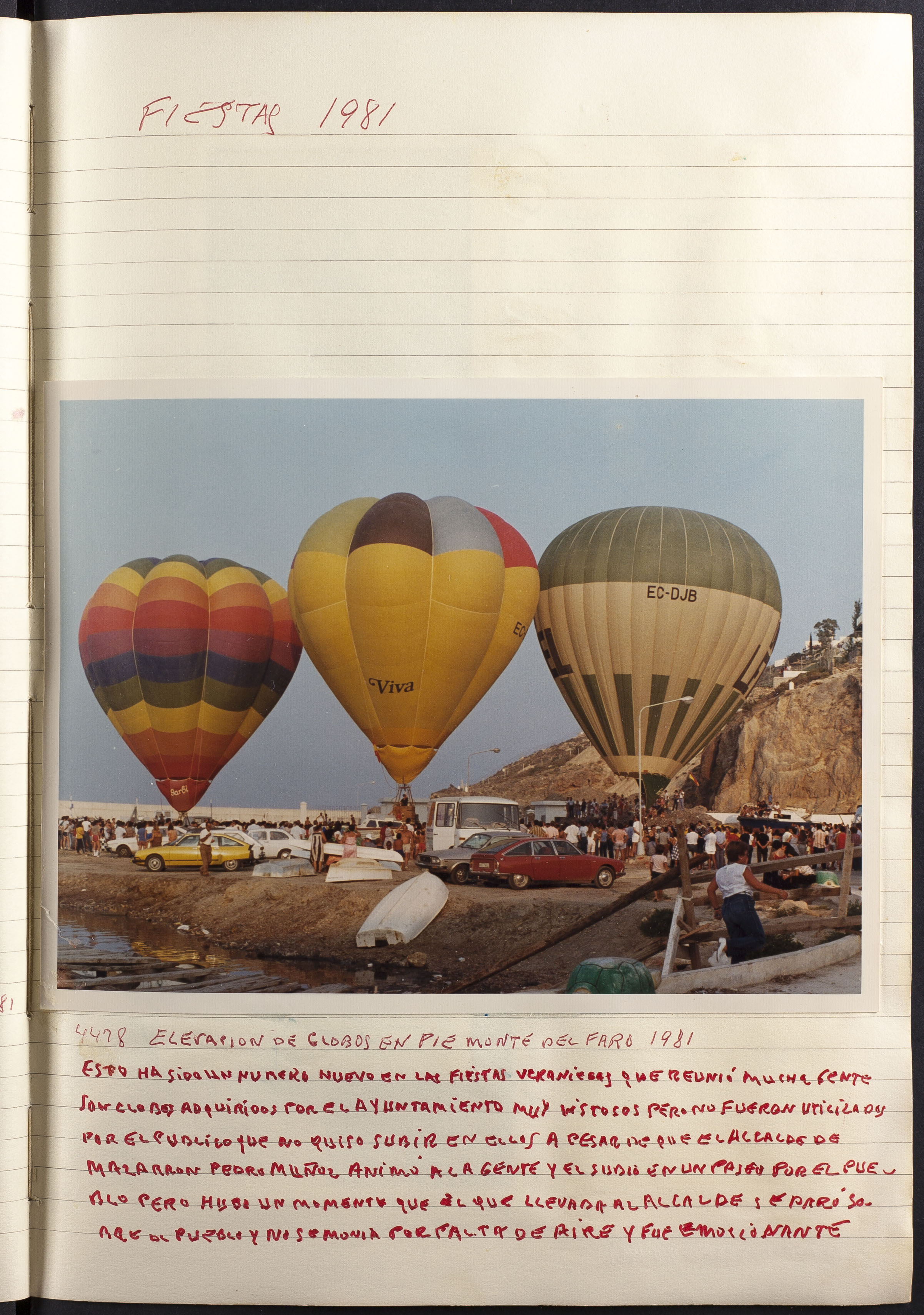 Comentario de la fotografía: ESTO HA SIDO UN NÚMERO NUEVO EN LAS FIESTAS VERANIEGAS QUE REUNIÓN MUCHA GENTE. SON GLOBOS ADQUIRIDOS POR EL AYUNTAMIENTO MUY VISTOSOS PERO NO FUERON UTILIZADOS POR EL PÚBLICO QUE NO QUISO SUBIR EN ELLOS A PESAR DE QUE EL ALCALDE DE MAZARRÓN PEDRO MUÑOZ ANIMÓ A LA GENTE Y ÉL SUBIÓ EN UN PASEO POR EL PUEBLO PERO HUBO UN MOMENTO QUE EL QUE LLEVABA AL ALCALDE SE PARÓ SOBRE EL PUEBLO Y NO SE MOVÍA POR FALTA DE AIRE Y FUE EMOCIONANTE.