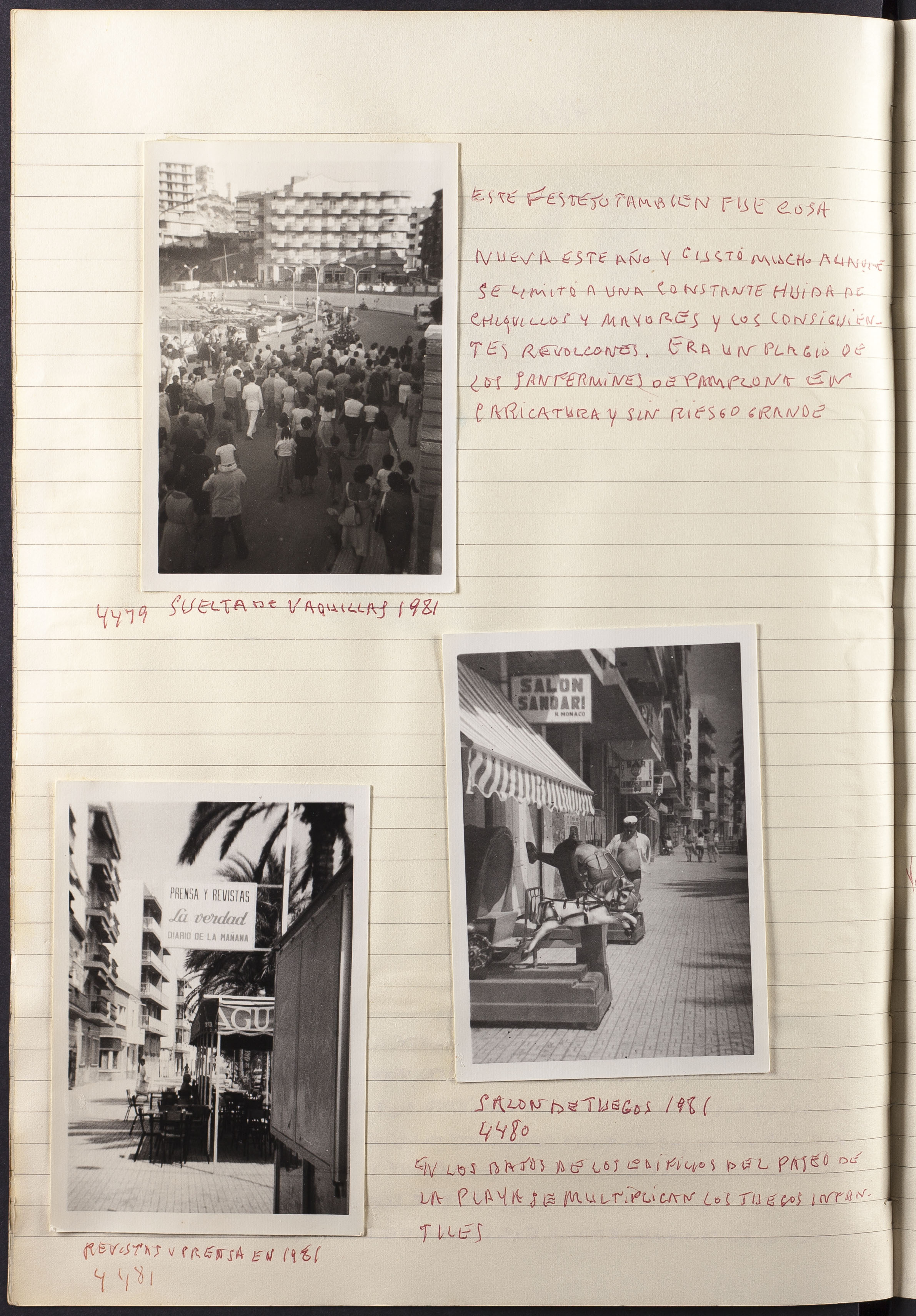 Papel con información manuscrita a bolígrafo tamaño 22 x31 cm. Incluye fotografías monocromas en diferentes tamaños que se especifican en el Alcance y contenido.